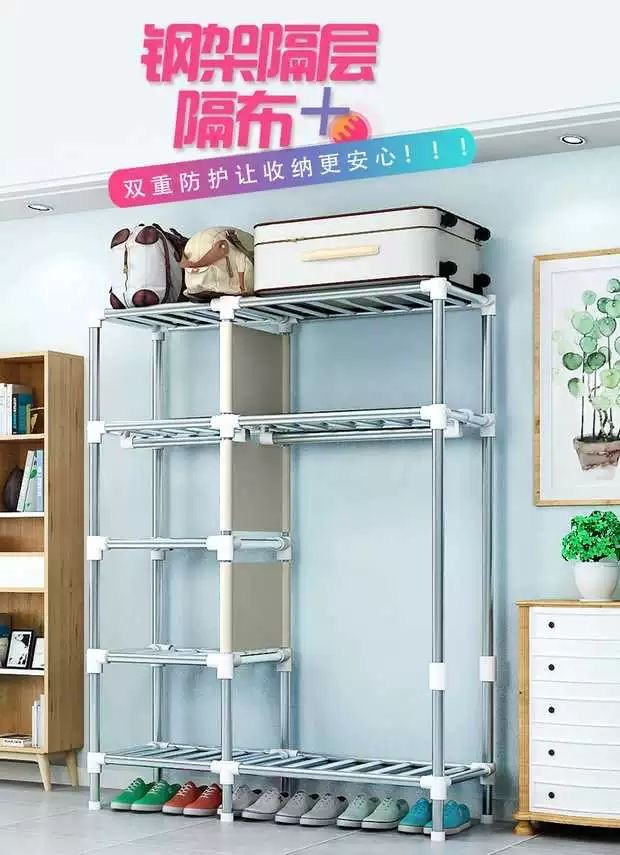 为您提供商品全钢架加粗加厚出租房屋收纳挂衣橱 简易布衣柜家用卧室小户型组装的详细介绍,