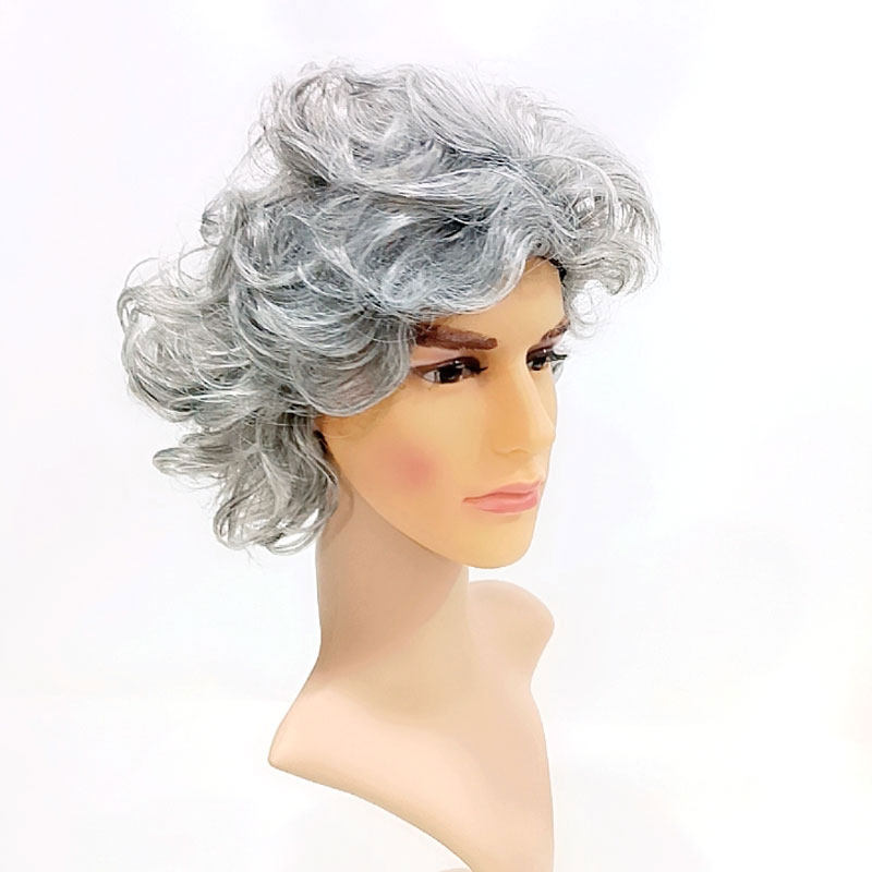 老奶奶假发演出假发头套舞台道具老太太老爷爷中年女花白短卷发