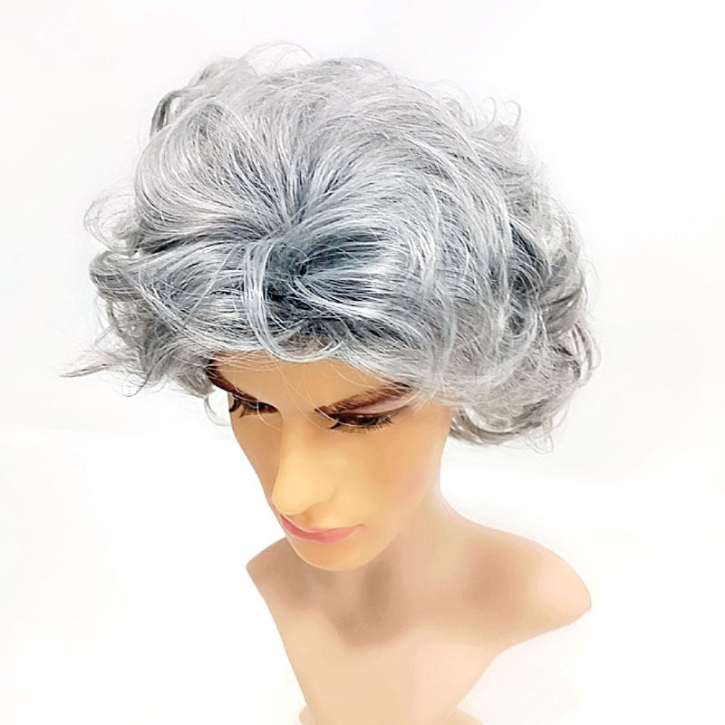 老奶奶表演假发套舞台演出道具中老年花白假发老太太女短卷发头套