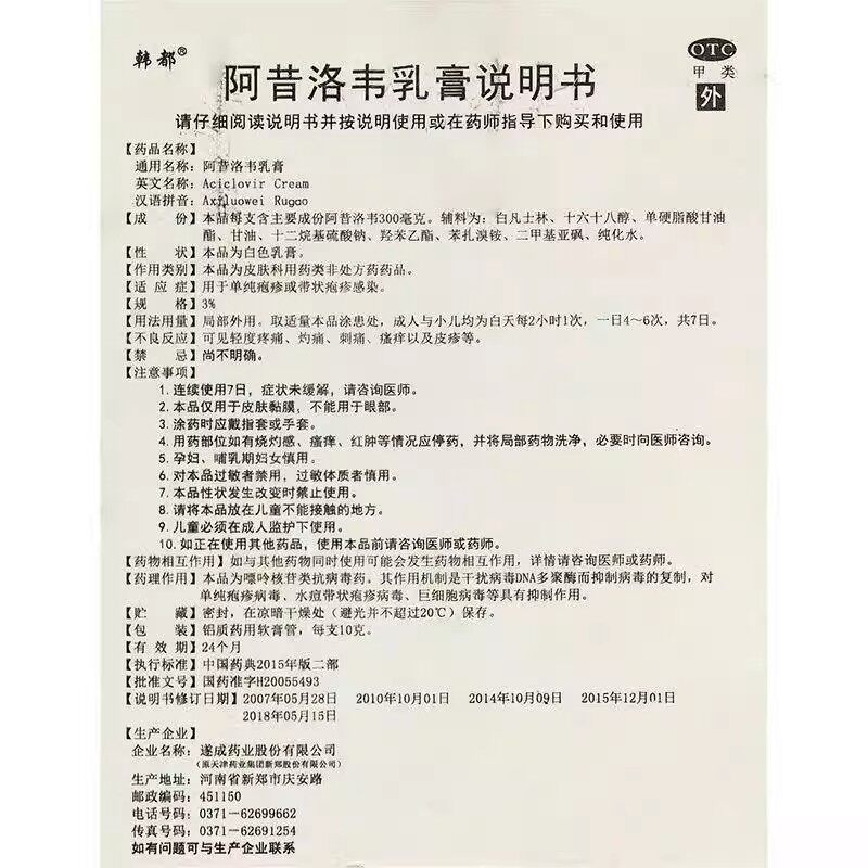 为您提供商品韩都 用于单纯疱疹或带状疱疹感染 阿昔洛韦乳膏正品的详细介绍,