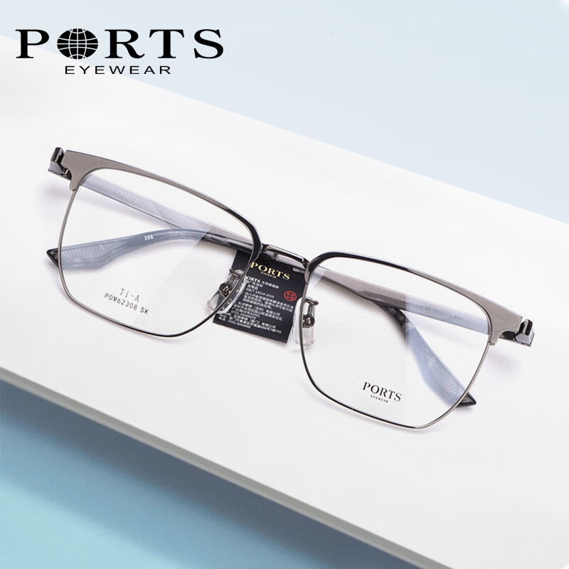 眼镜潮流眉线框近视眼镜架男大脸休闲钛架POM62308 PORTS时尚