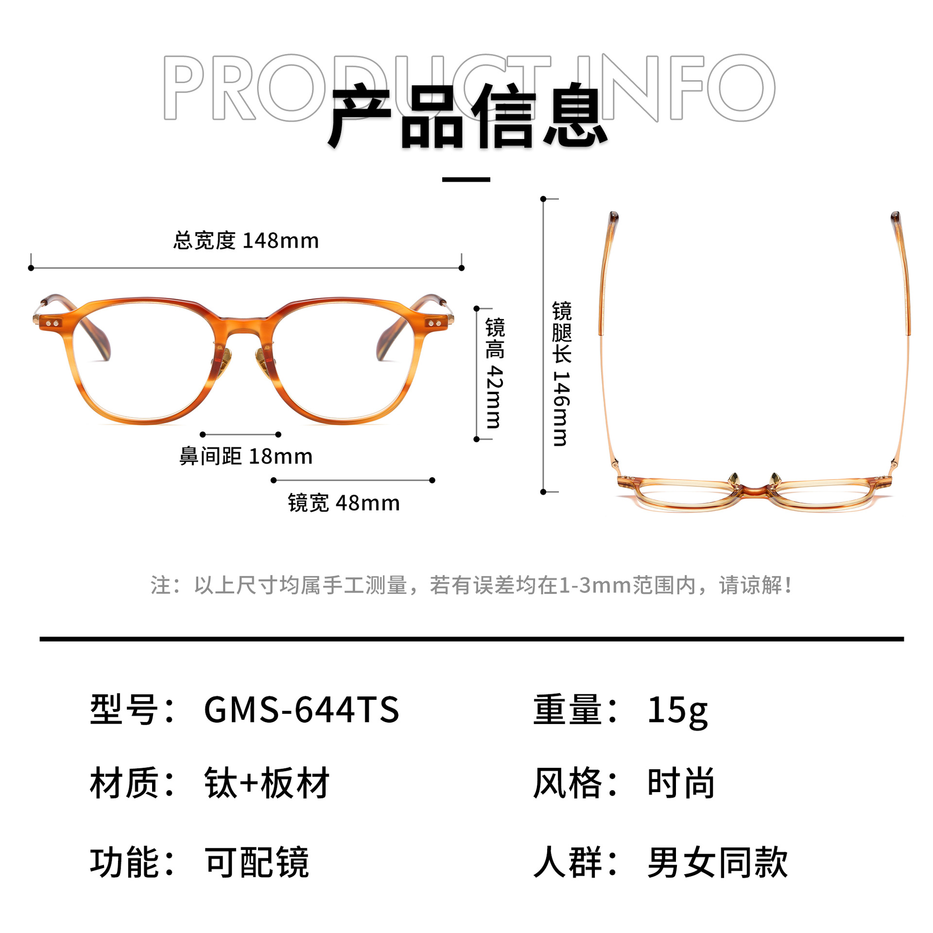 增同永款 644TS板材纯钛眼镜框超轻近视镜架圆框 GMS