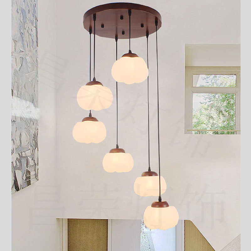 楼客厅灯创意棉花餐桌loft旋转长吊灯 楼梯吊灯原木奶油风公寓复式