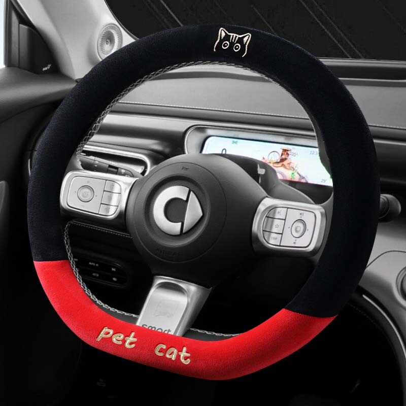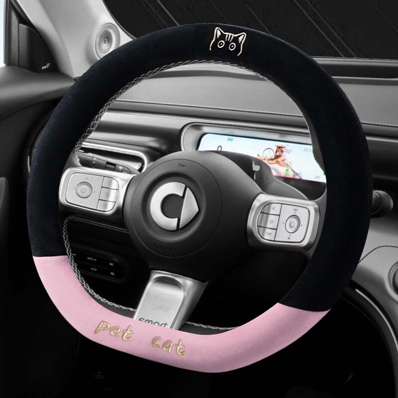 四季 汽车翻毛方向盘套高级感麂皮绒吸汗防滑把套毛绒可爱 通用新款