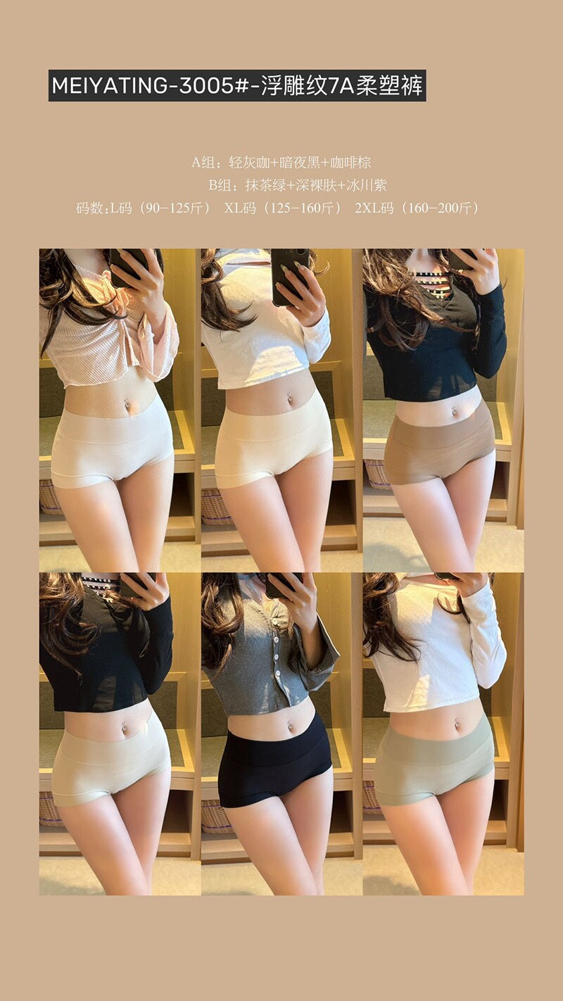 内裤 3色装 浮雕纹柔塑7A乳酸裤 亲肤无痕中高腰大码 3005 三角裤