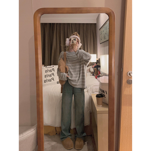 橘子树在哪儿白色复古直筒牛仔裤 款 高腰宽松垂感拖地阔腿裤 女春季