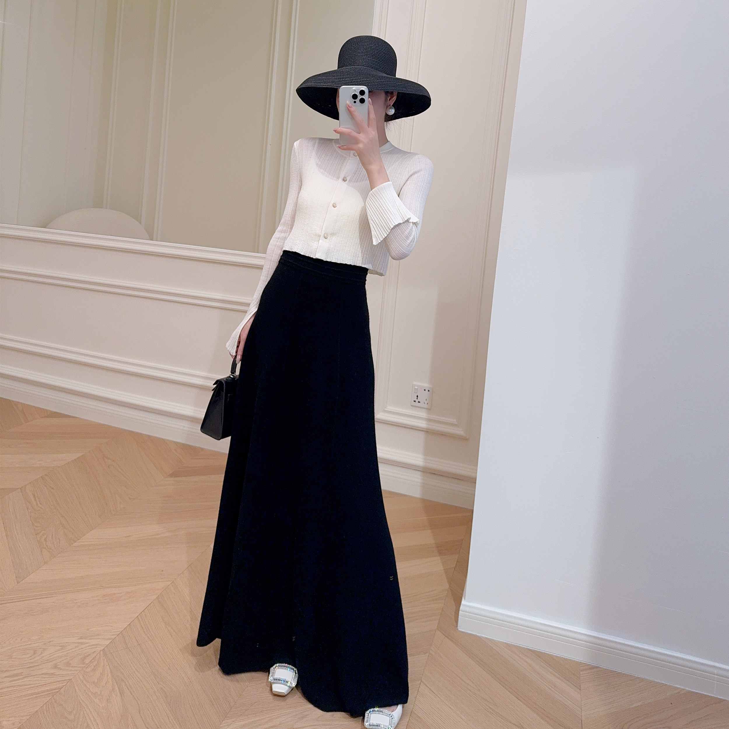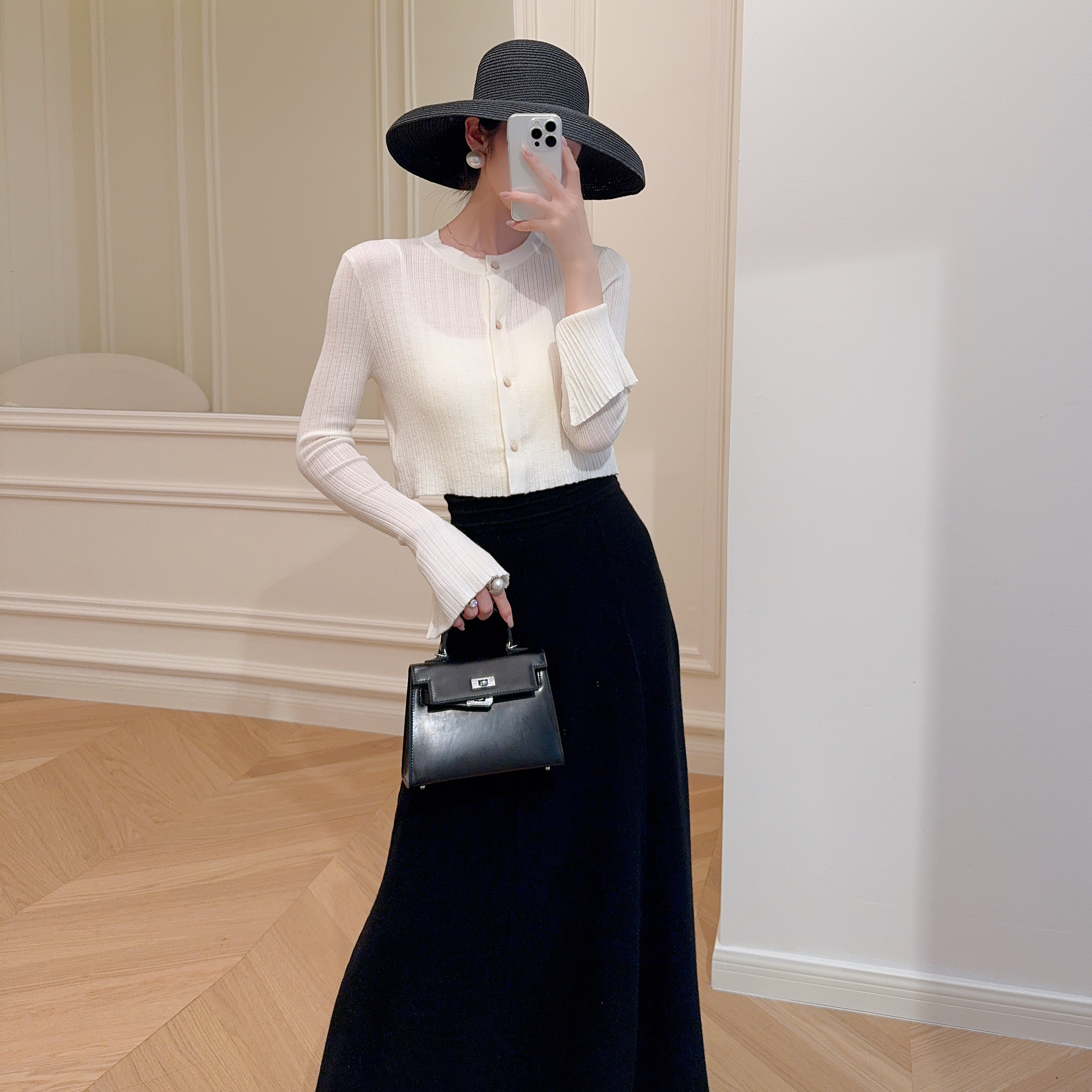 内搭2026新款 半高领木耳边针织上衣高级感毛衣 女春秋季 白色打底衫