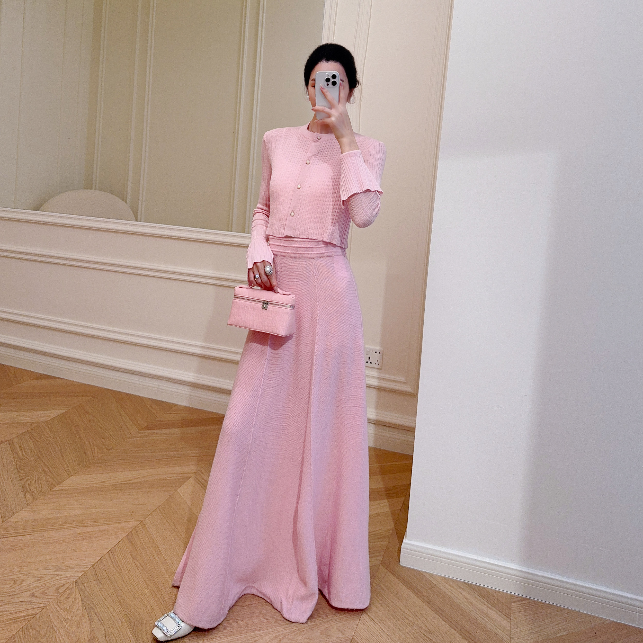 aaaaxbbb 风 羊毛针织开衫 外套V领吊带上衣纽扣圆领两件套 春禾季