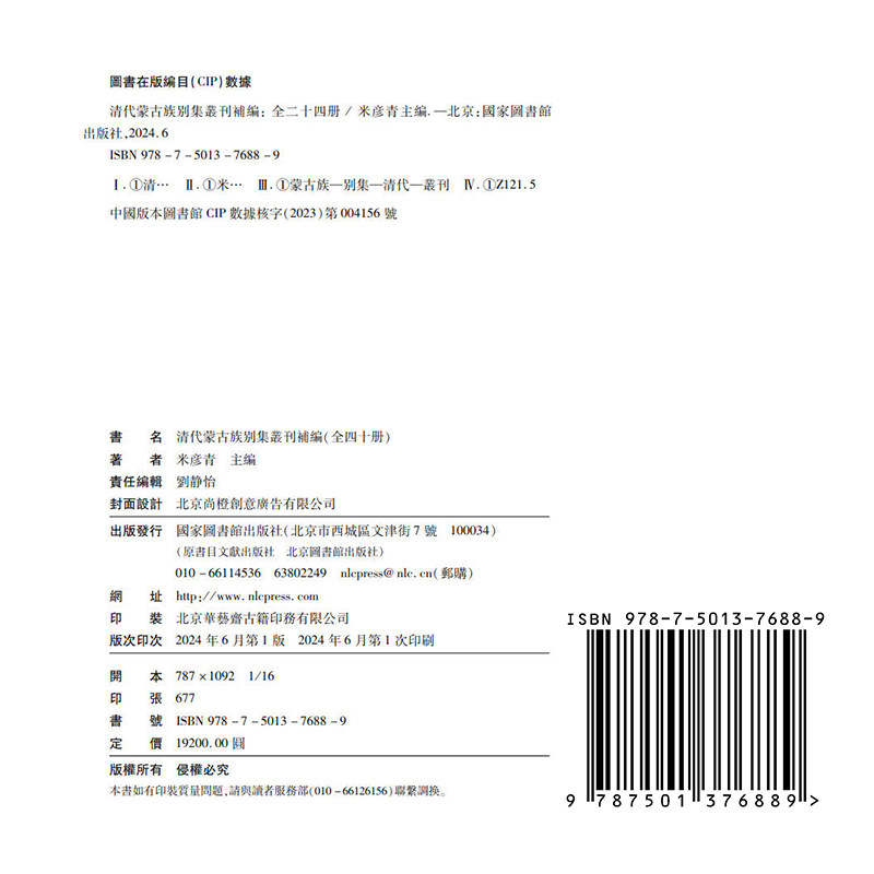 为您提供商品全二十四册 清代蒙古族别集丛刊补编 全新 9787501376889 国家图书馆出版 社 米彦青 正版的详细介绍,
