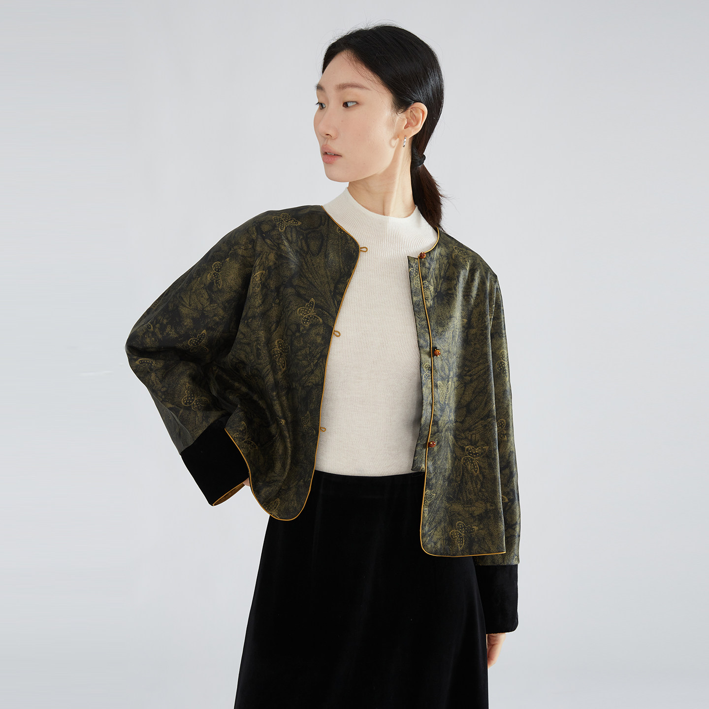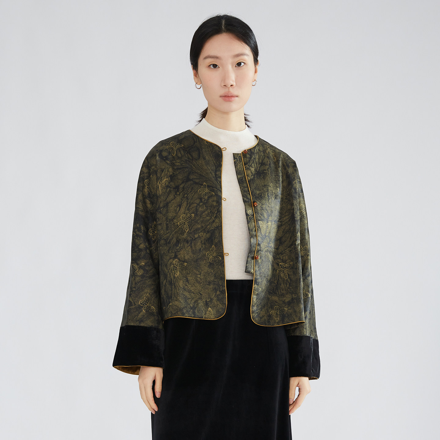 一丝牵重缎皮子50姆米鎏金蝴蝶香云纱国风真丝外套100%桑蚕丝上衣由