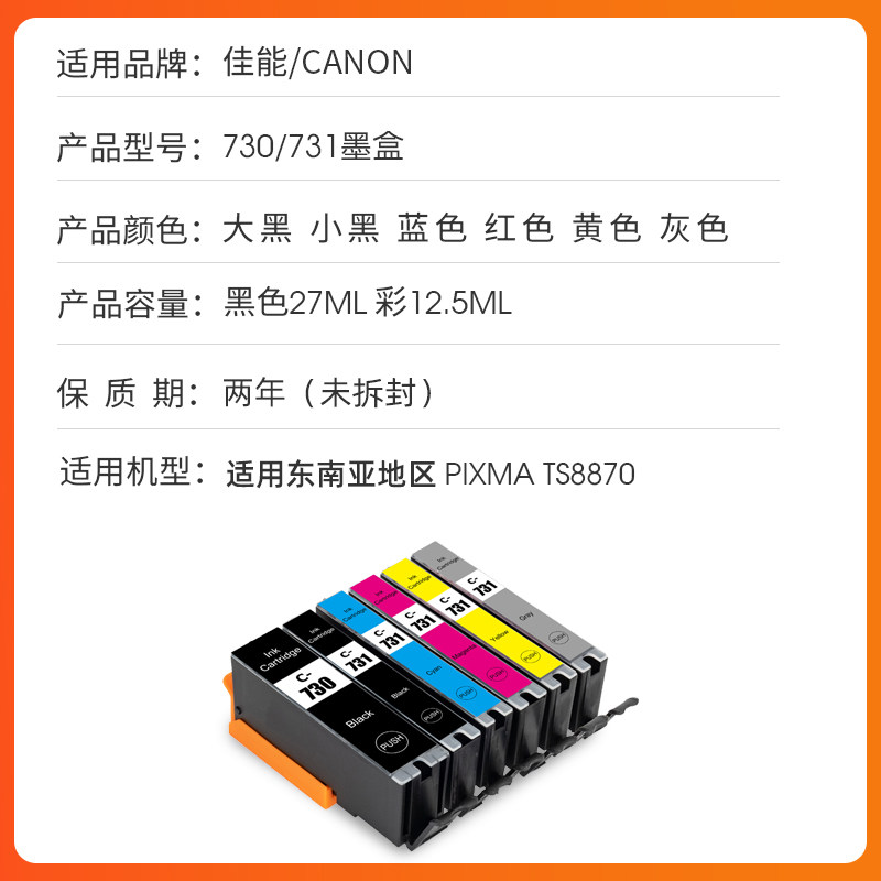 为您提供商品731 PGI730墨盒CLI731墨盒 TS8870打印机730 适用Canon佳能PIXMA的详细介绍,