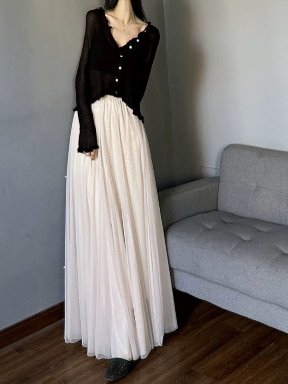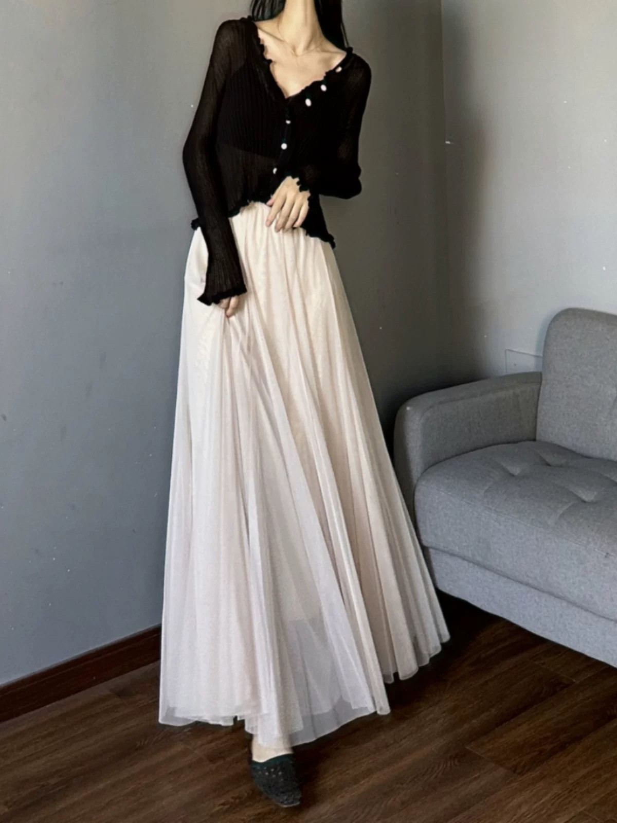 为您提供商品高级感两层网纱半身裙长款 纱裙垂感高腰遮跨大摆a字长裙 及踝新款的详细介绍,