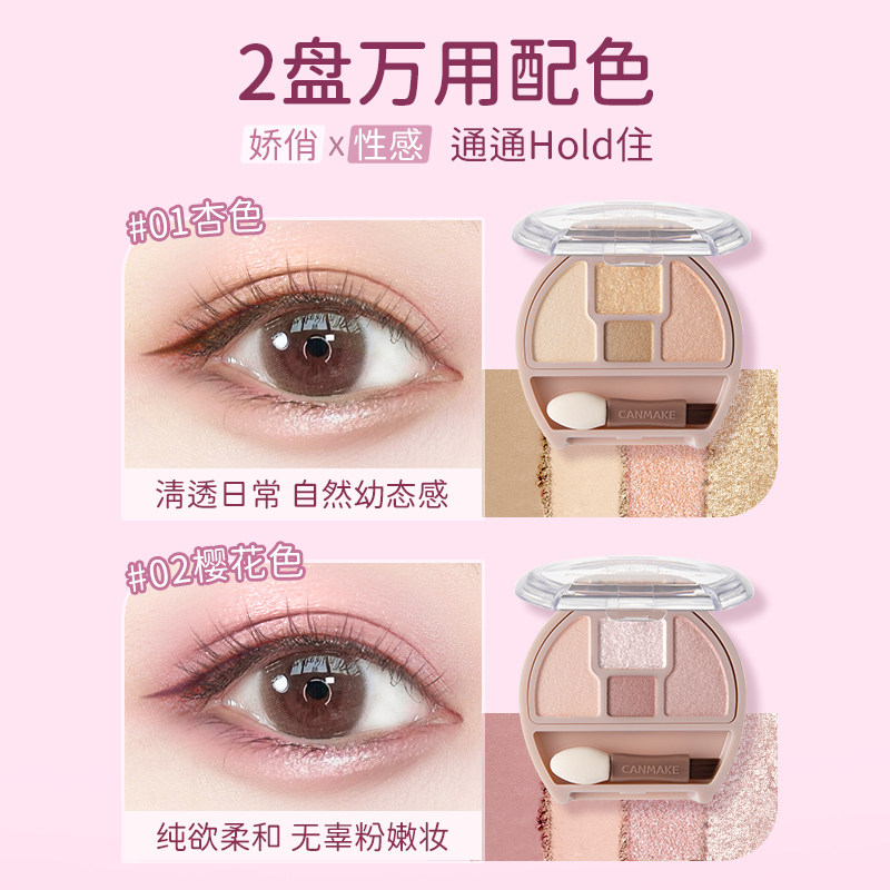 CANMAKE 井田日本卧蚕眼影综合盘四色阴影细闪高光缎光 新色