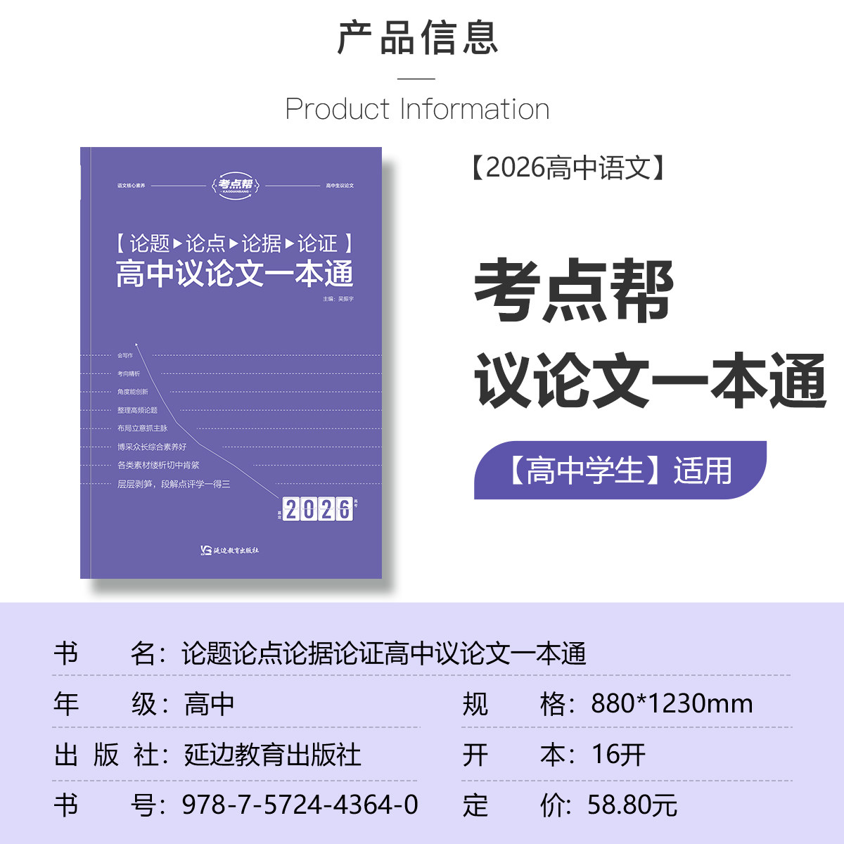 为您提供商品考点帮2026新版 写作技巧练习范文参考高考冲刺复习备考申论指导 高中生议论文论题论点论据论证一本通高一二三语文作文素材满分模版的详细介绍,