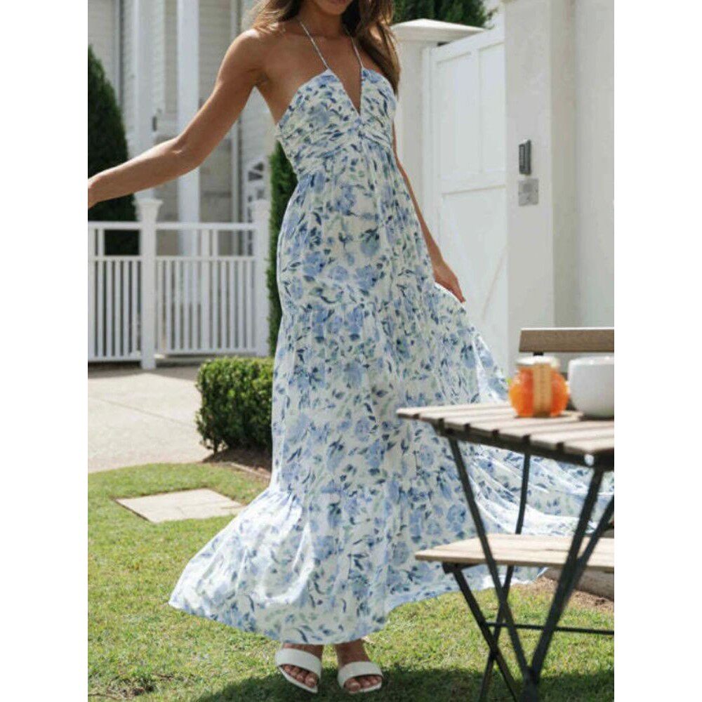 RUISHI芮时 花朵系带宽松度假风荷叶边连衣裙子女夏 云絮柔漾