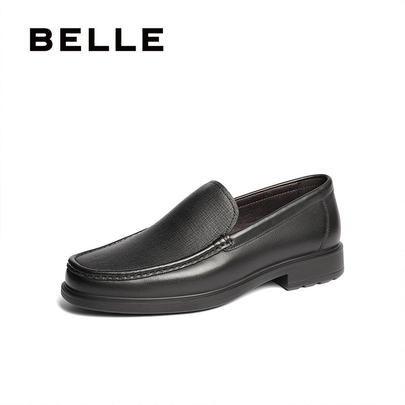 百丽男鞋 春新商场通勤套脚真皮正装 鞋 8PV01AM5 一脚蹬商务男士