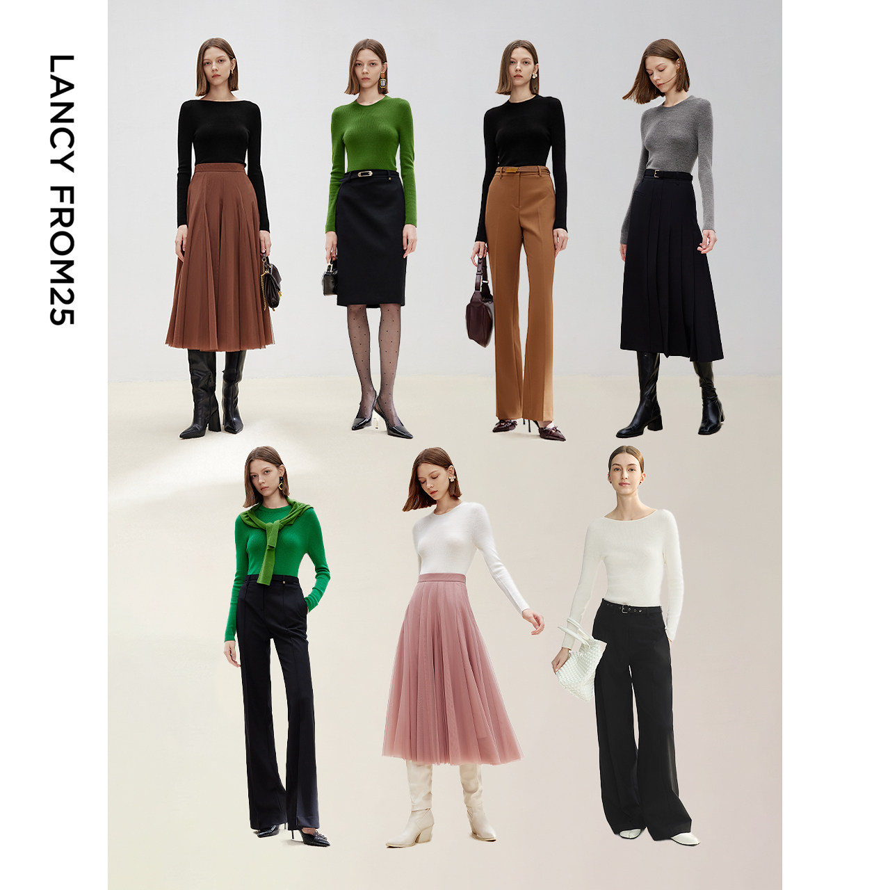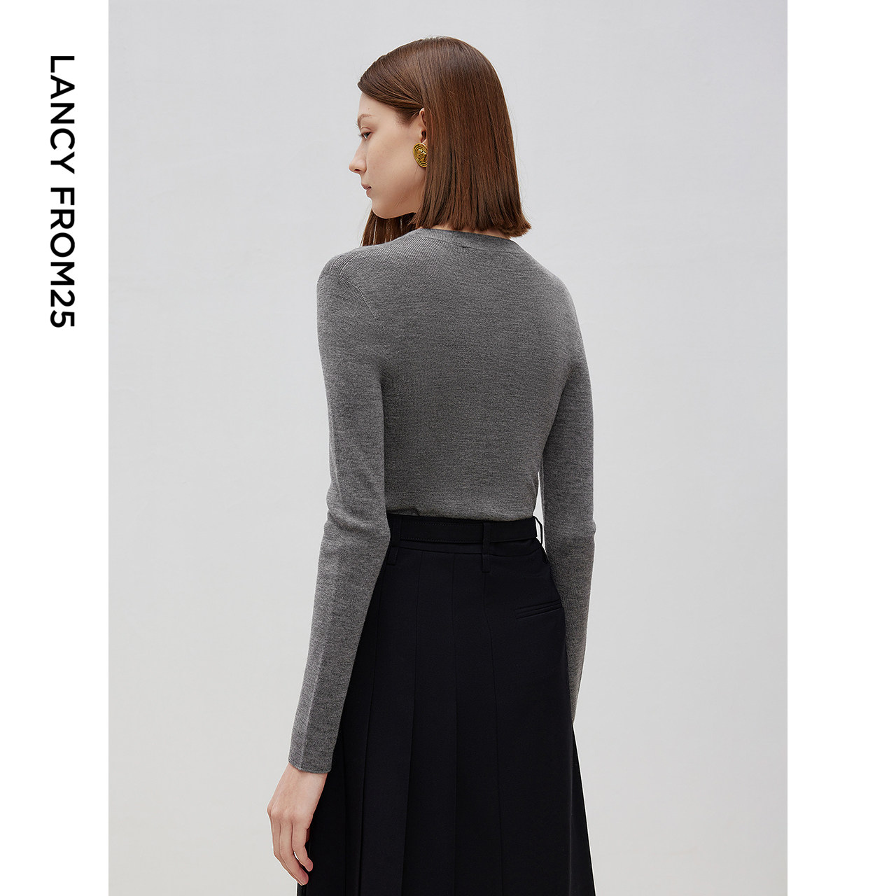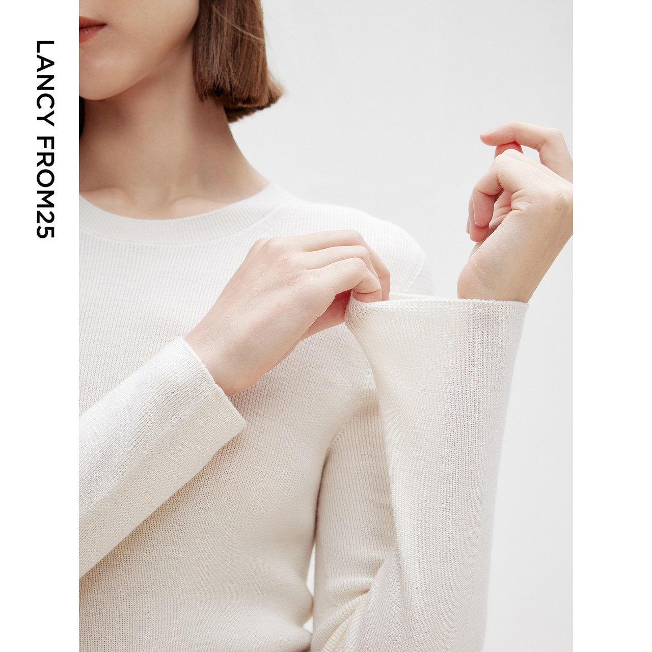 朗姿25纯羊毛打底毛衣高智设计感气质上衣春新款 女 毛针织衫由