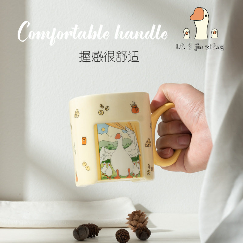 大鹅进帐早餐牛奶杯生日礼物水杯可爱情侣厚实陶瓷马克杯咖啡杯由