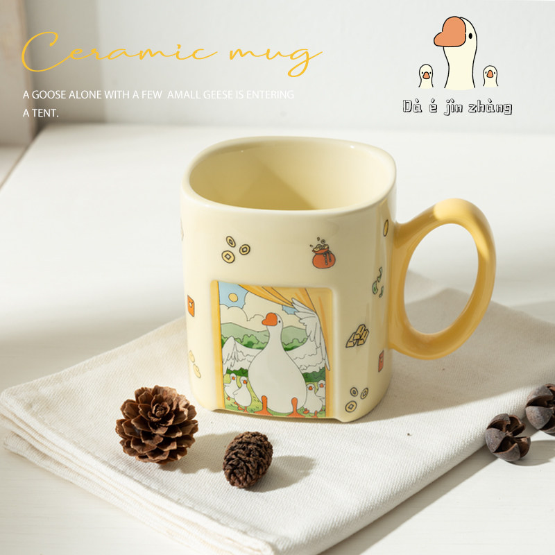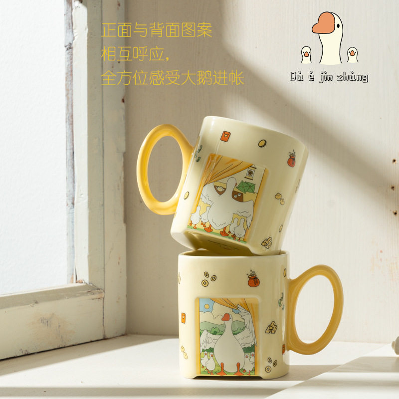大鹅进帐早餐牛奶杯生日礼物水杯可爱情侣厚实陶瓷马克杯咖啡杯