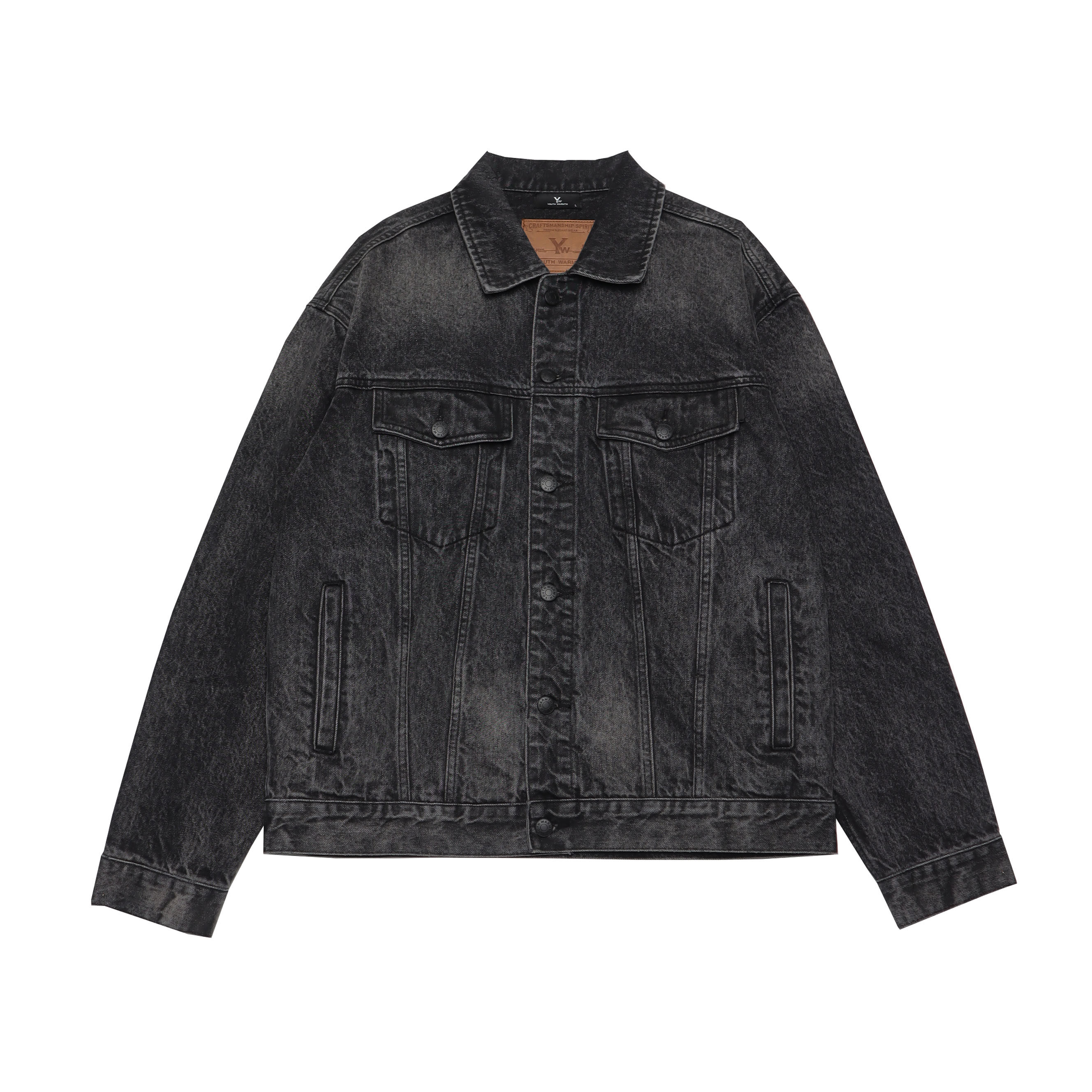牛仔外套男复古雪花洗黑灰色2026春季 潮牌宽松休闲牛仔夹克 新款
