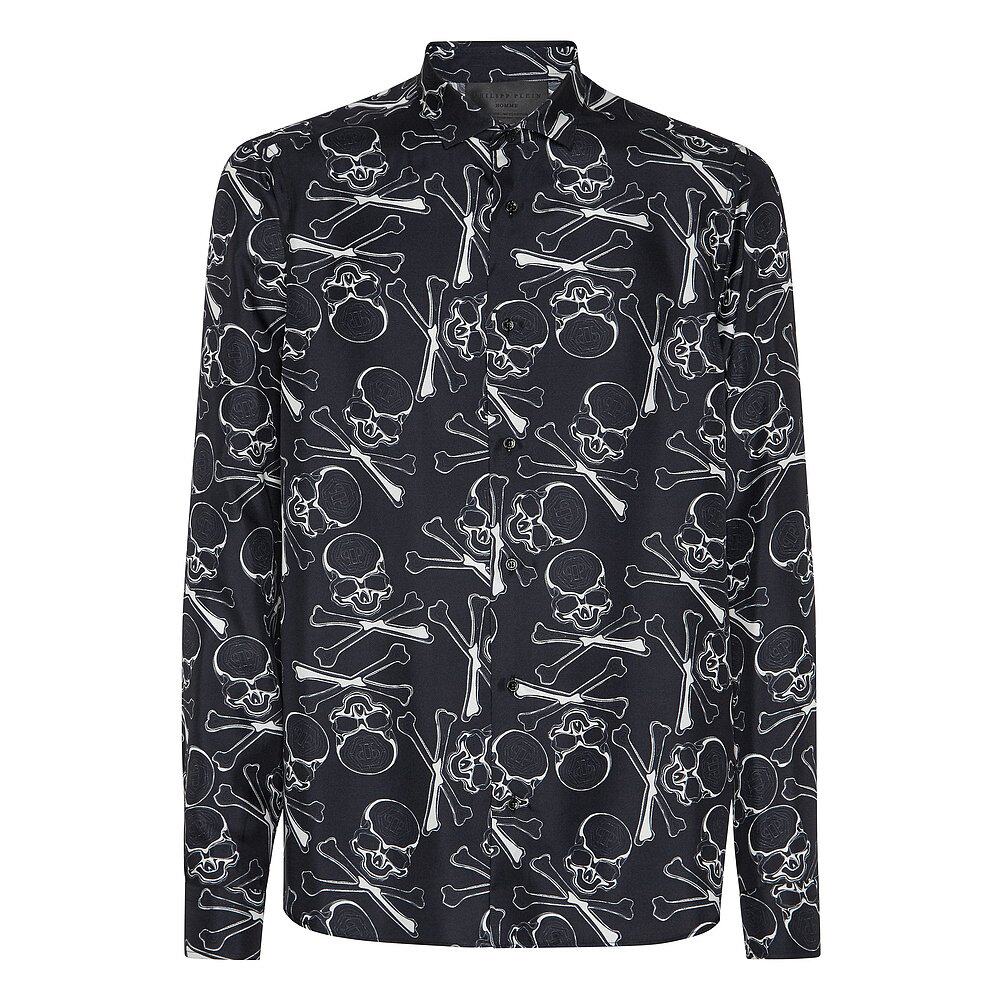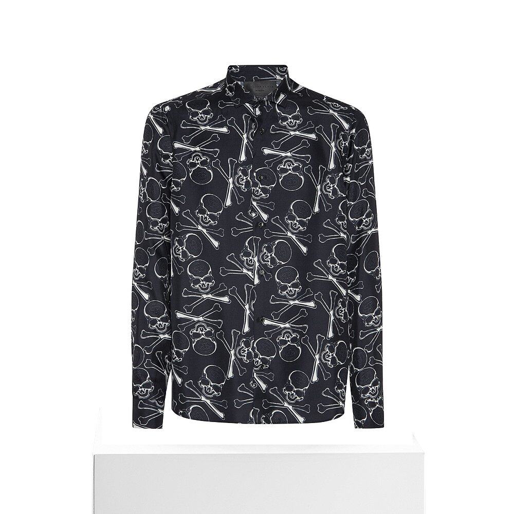 Skull&Bones 自营 philipp plein丝绸花花公子衬衫 美国奥 黑色