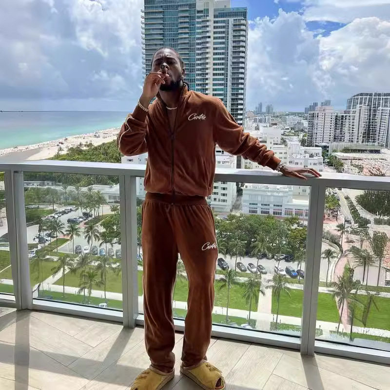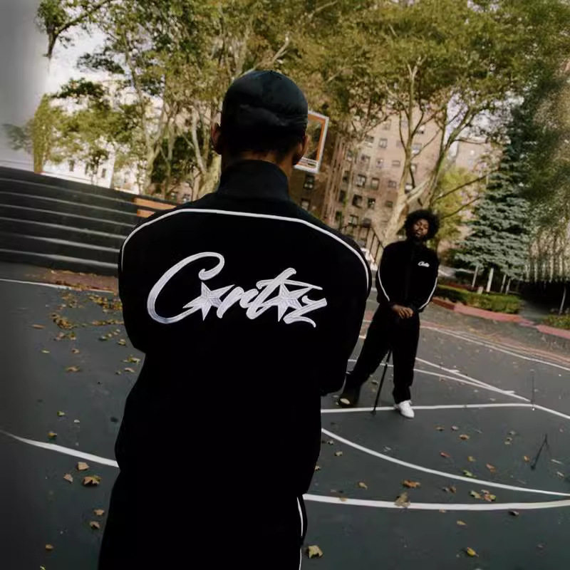 套装 复古Corteiz恶魔岛印花立领加绒拉链夹克高街男女休闲裤 美式由