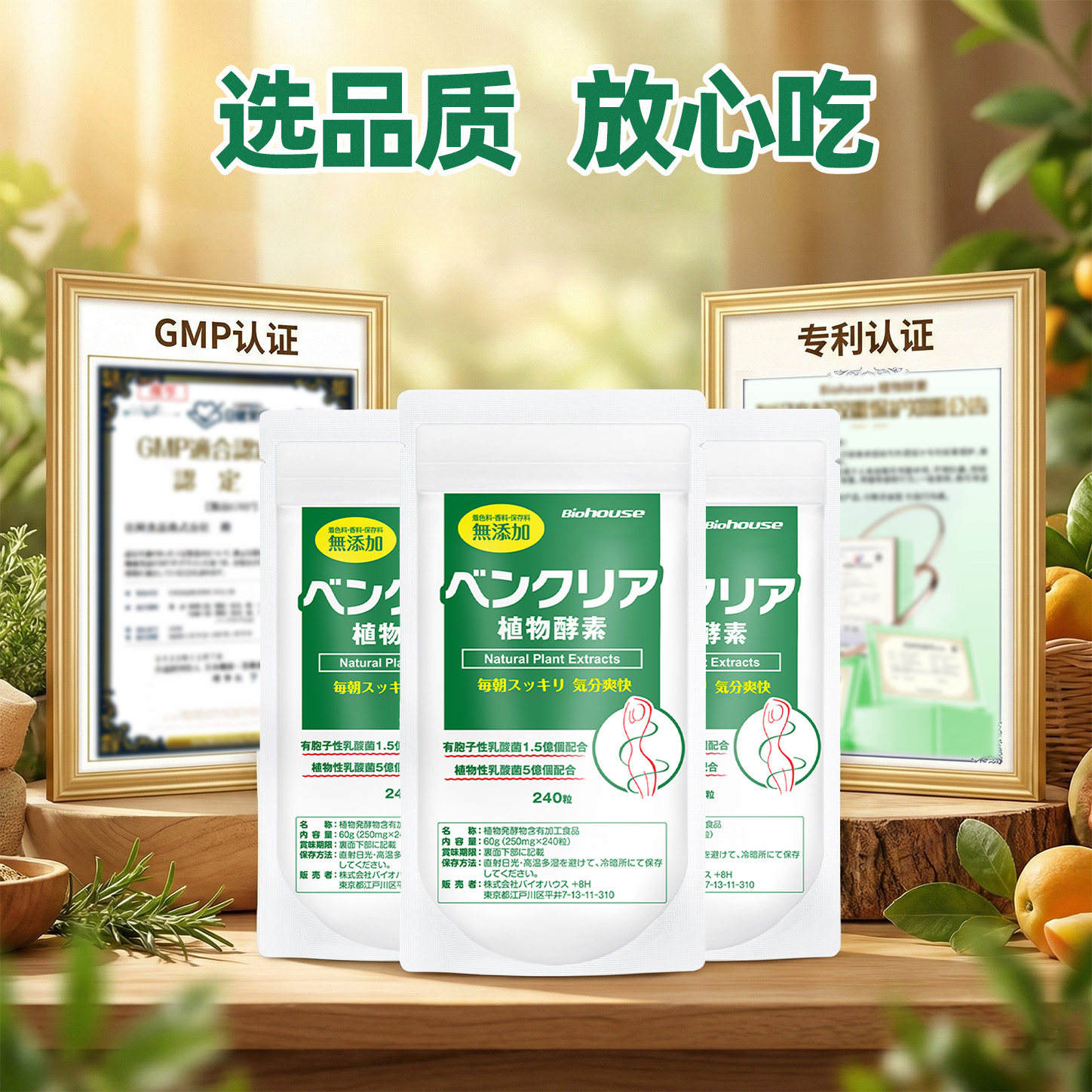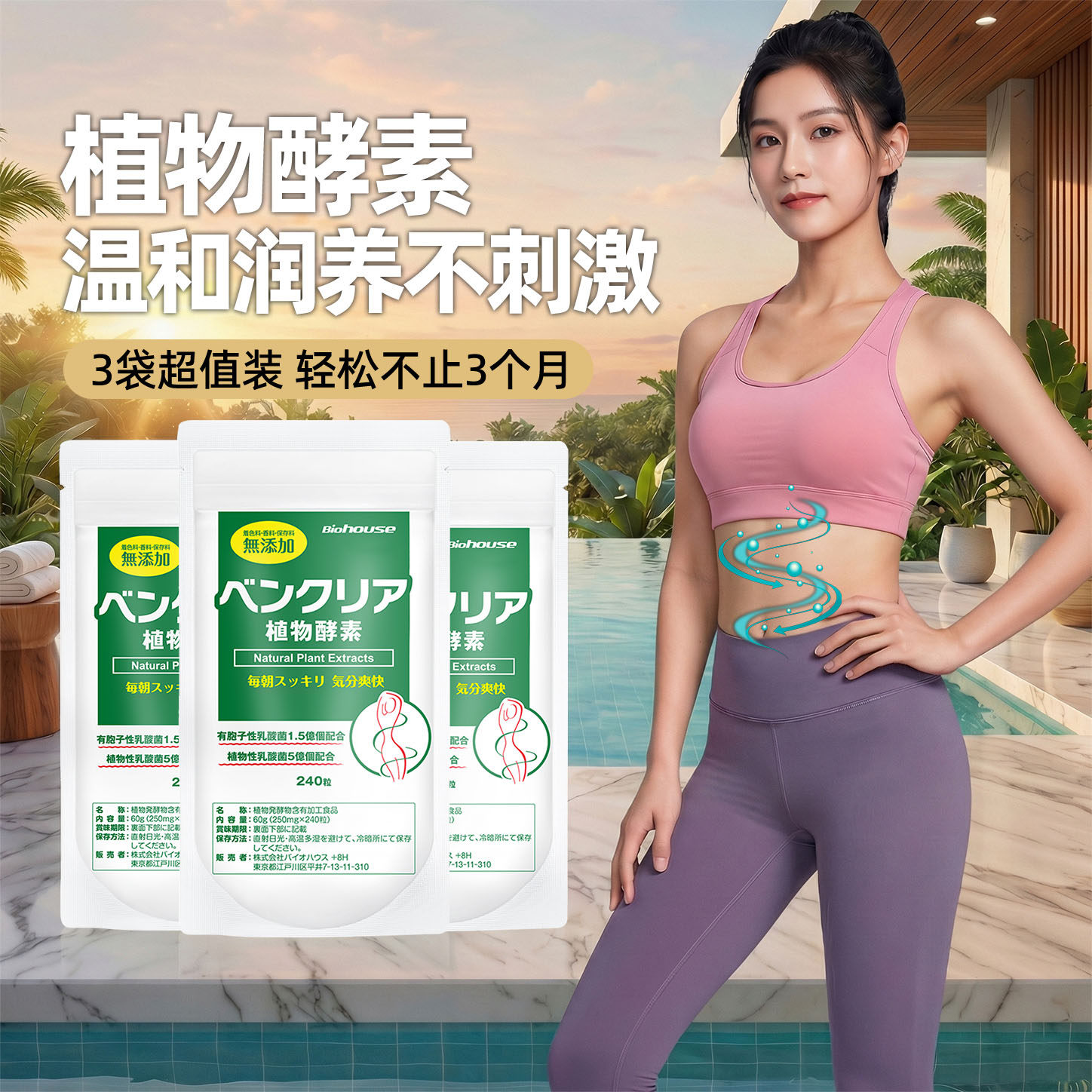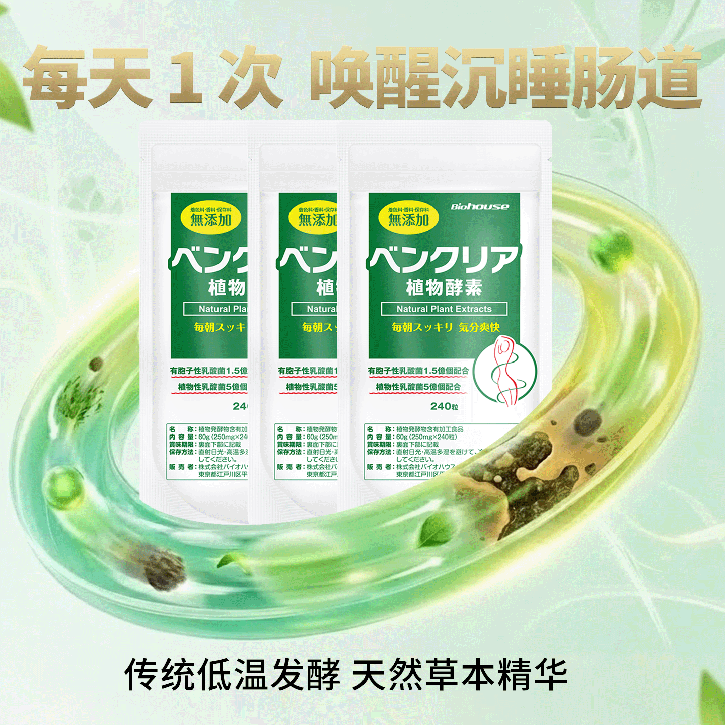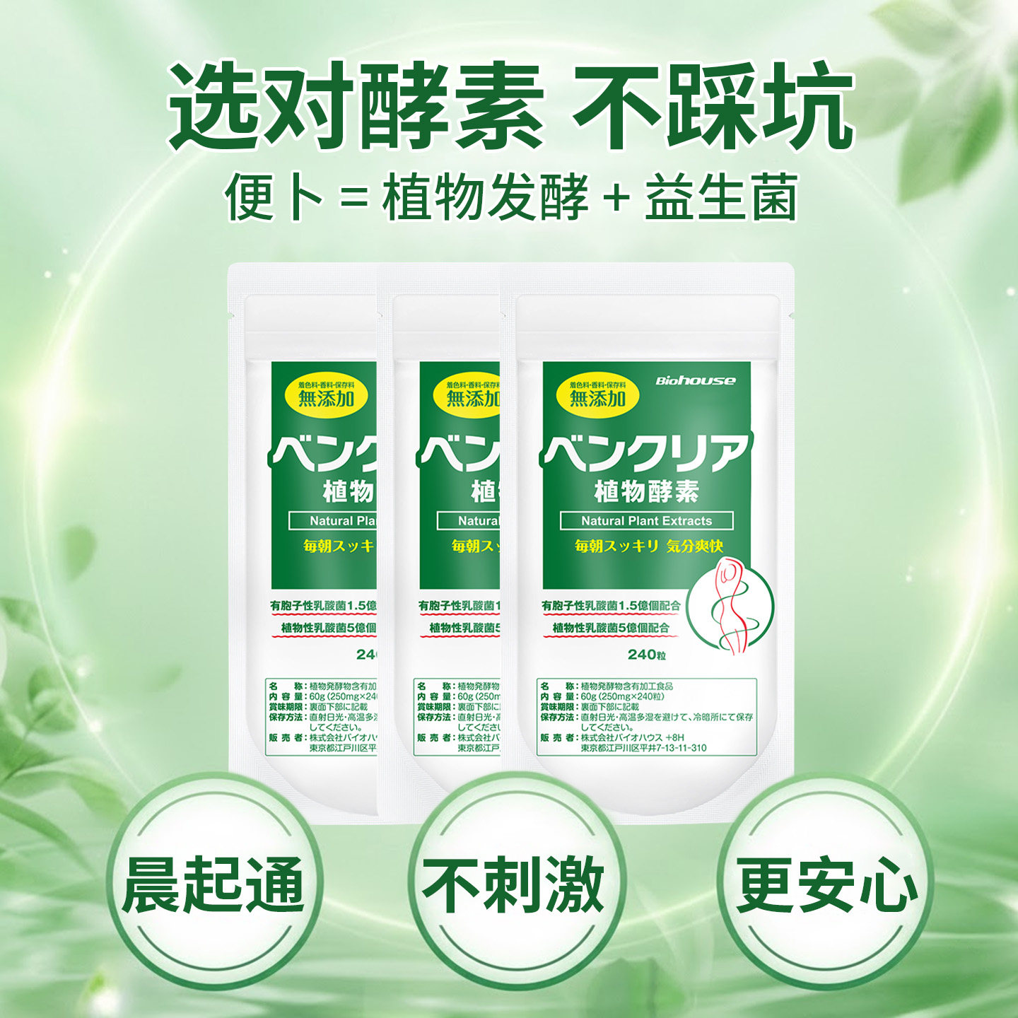 日本biohouse便卜夜间植物酵素西梅益生菌肠道噗噗片240粒3袋装由