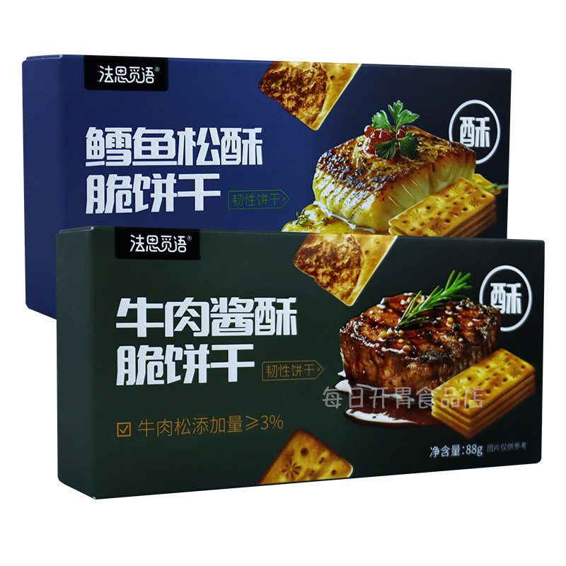 牛肉馅夹心薄脆饼干牛肉酱酥脆饼干鳕鱼松双层小饼干独立小袋包装由