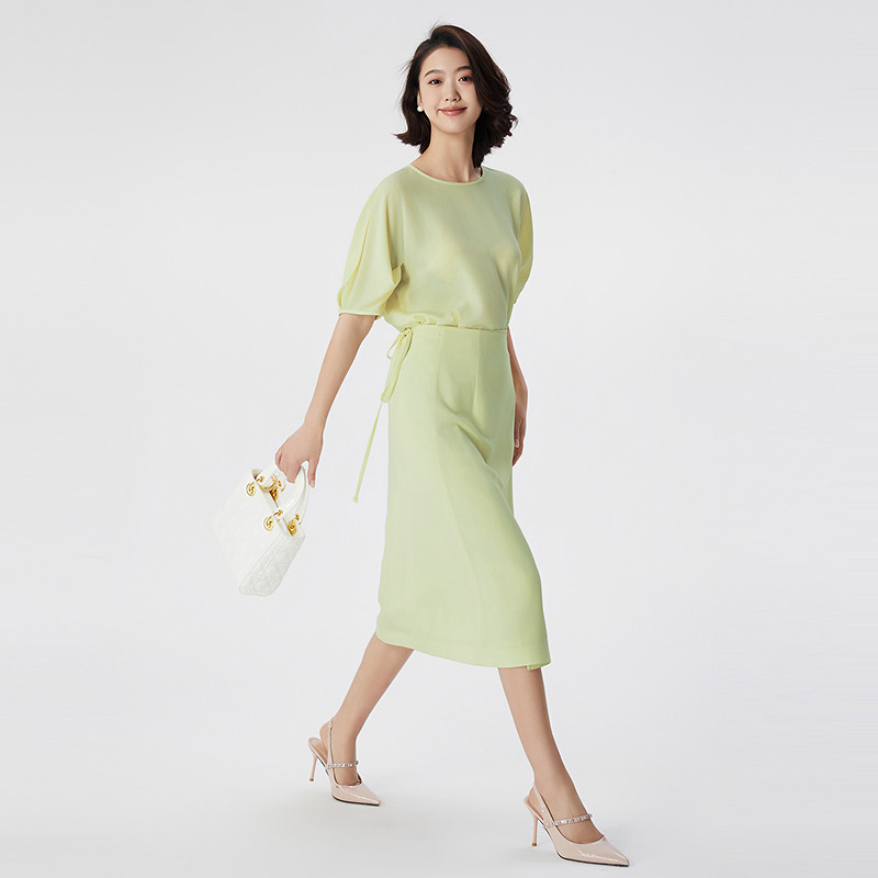 OBEG欧碧倩醋酸系带淡人系半身裙女夏优雅知性裹裙中长裙10482099