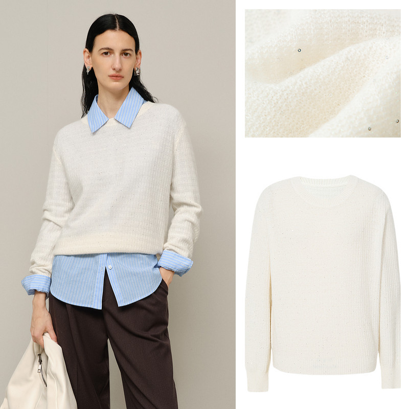 针织衫 镇店之宝 无缝一体 卷边圆领套头纯色百搭长袖 25005 YXJ