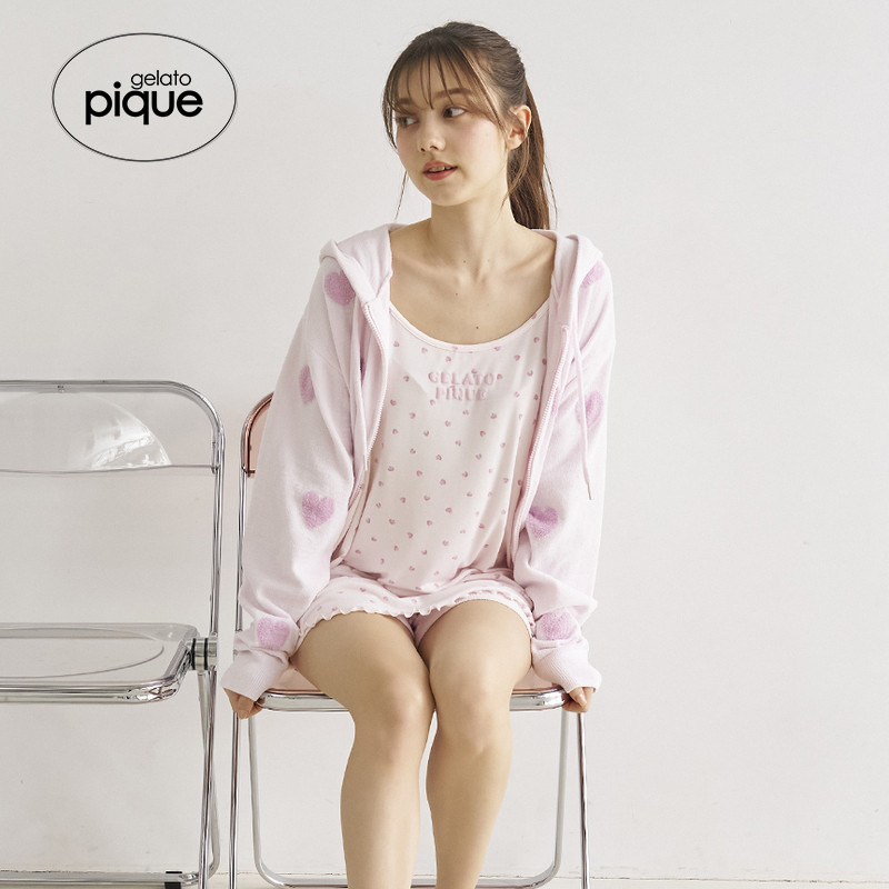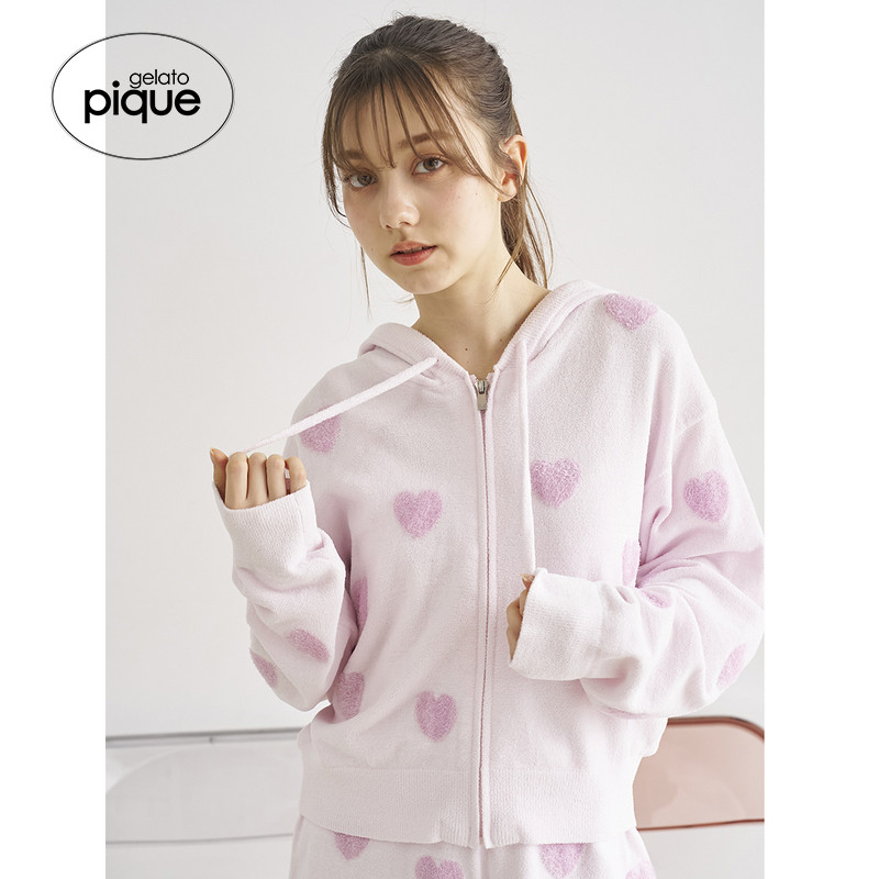 gelato 新品 女爱心提花连帽拉链开衫 睡衣PWNT252058 pique25夏季