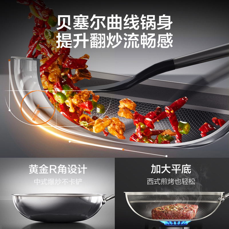 康巴赫Pro版 真钛0涂层炒锅无涂层家用不粘锅不锈钢炒菜锅 新品