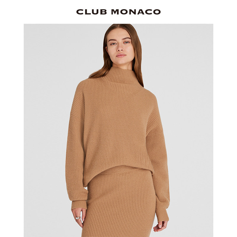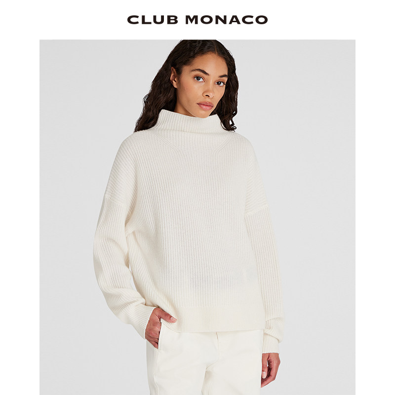 CLUB 100%山羊绒 半高领落肩慵懒毛衣针织衫 MONACO女装由