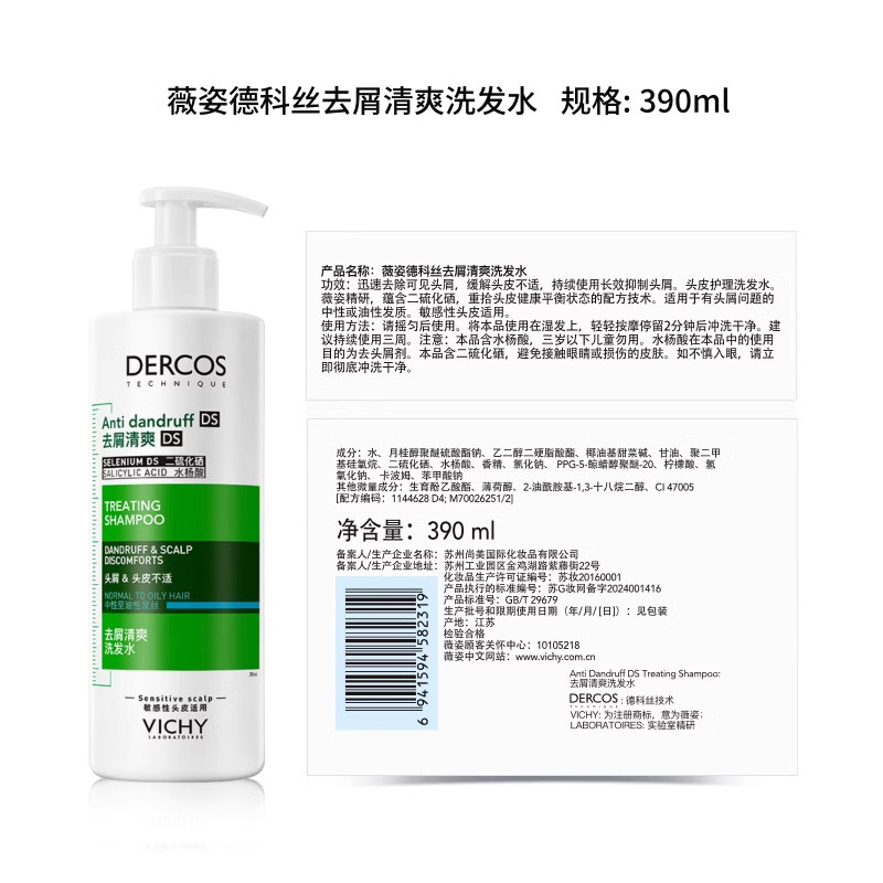 薇姿绿标洗发水清爽去屑控油蓬松洗发露390ml 下拉享淘金币