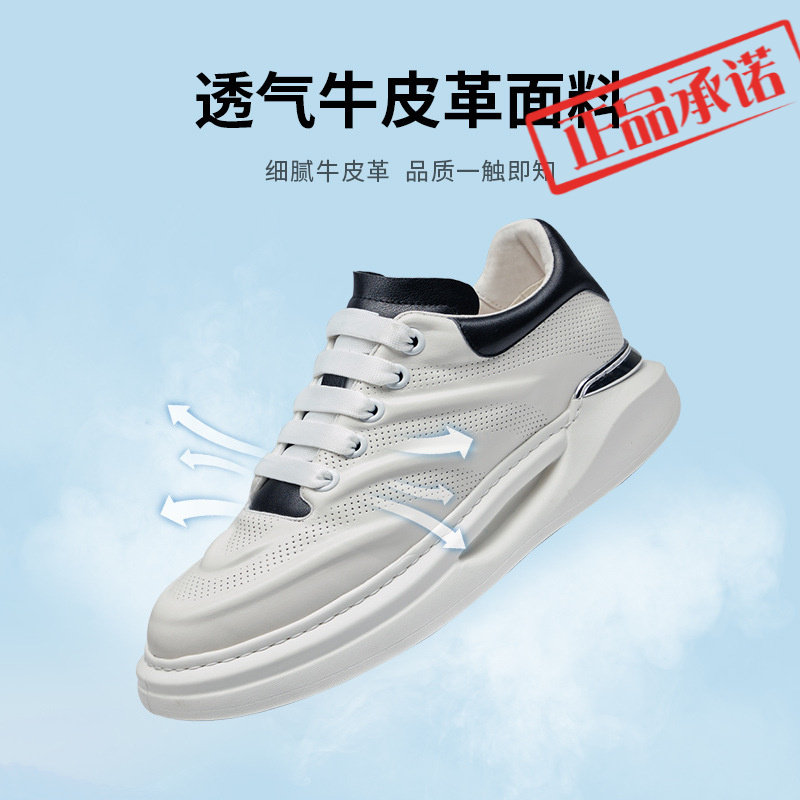 增高休闲鞋 高哥内增高鞋 男 轻质潮流板鞋 真皮麦坤小白鞋 子男款 夏季