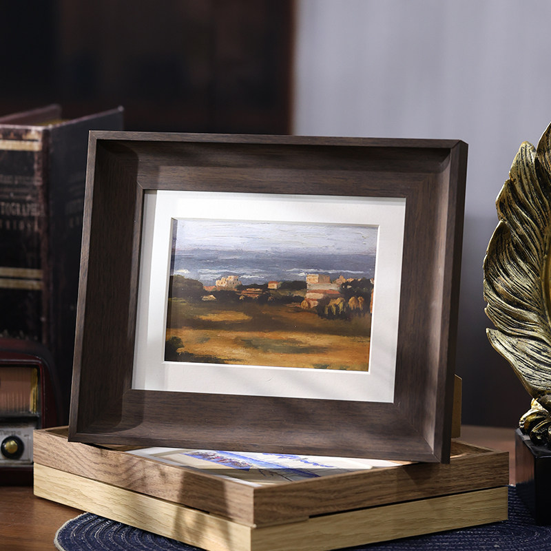 复古实木相框洗照片定制摆台678寸美式 裱a4A3框架 怀旧画框空框装
