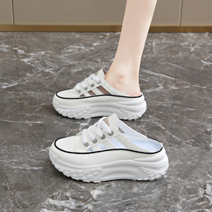 踩屎感包头半拖老爹鞋 外穿34码 厚底增高小白孕妇凉拖鞋 女2026夏季