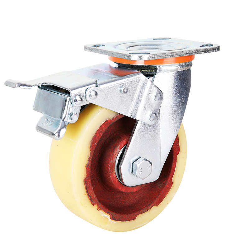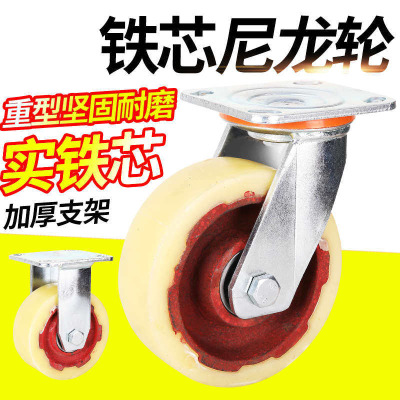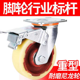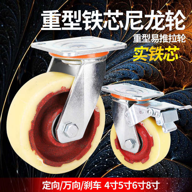 6寸重型万向轮458寸工业手推车轮子铁芯尼龙耐磨刹车轮抗压轱辘