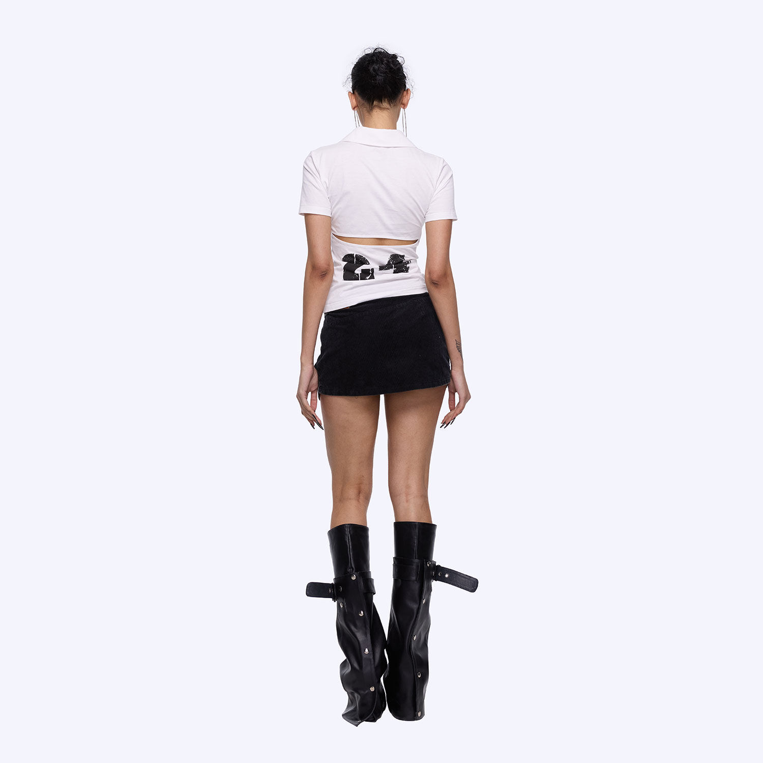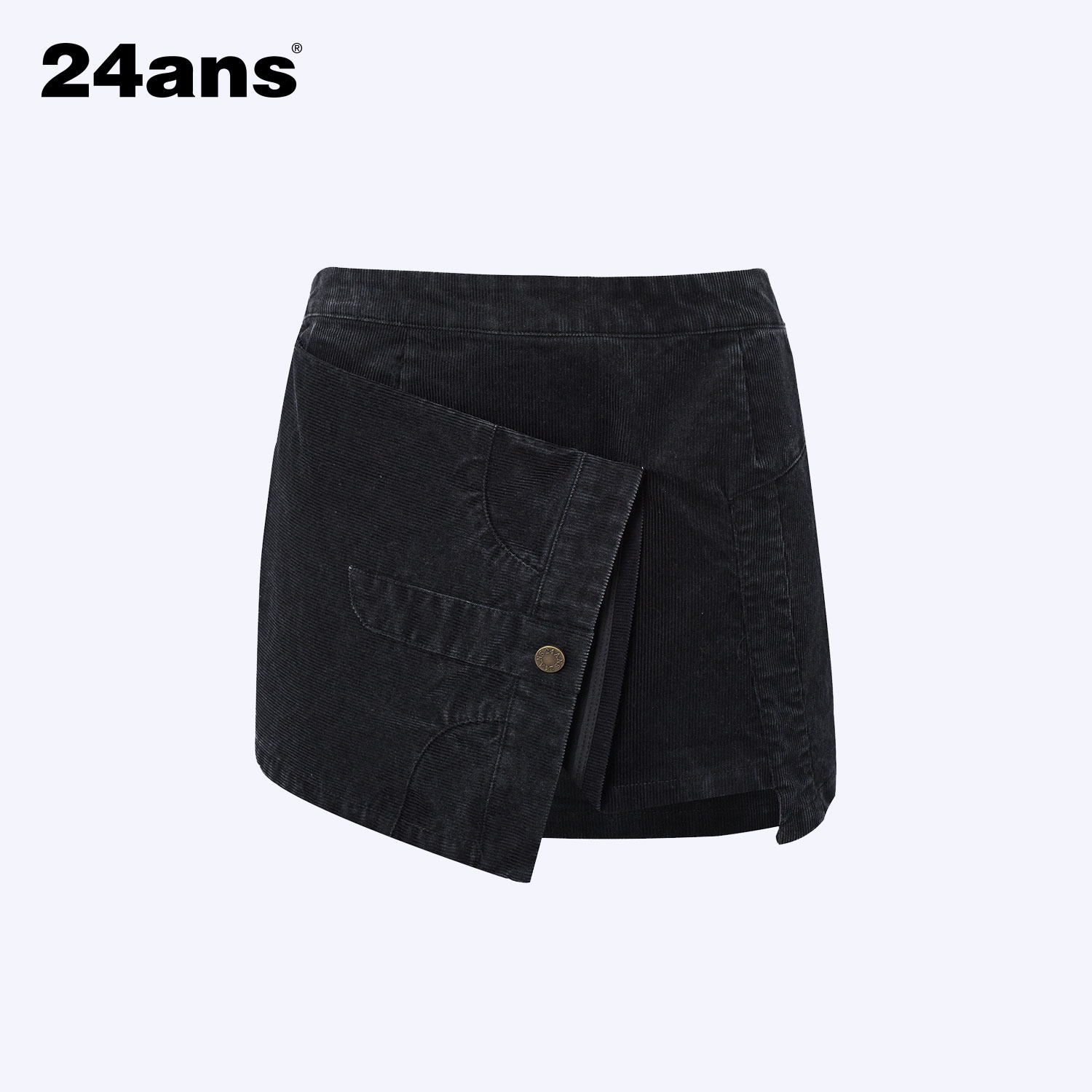 24ans short skirt 不规则设计黑色灯芯绒短裙 Corduroy