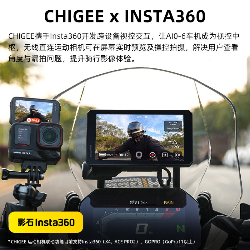 6智能车机carplay投屏导航行车记录仪盲区监测SOS CHIGEE骑技AIO由