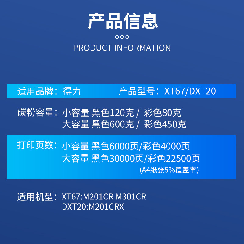 为您提供商品M301CR粉盒XT 67墨粉盒M201CRX打复印机粉筒DXT20复印机感光硒鼓XT67Ke彩色碳粉盒墨盒 适用得力M201CR NBN的详细介绍,
