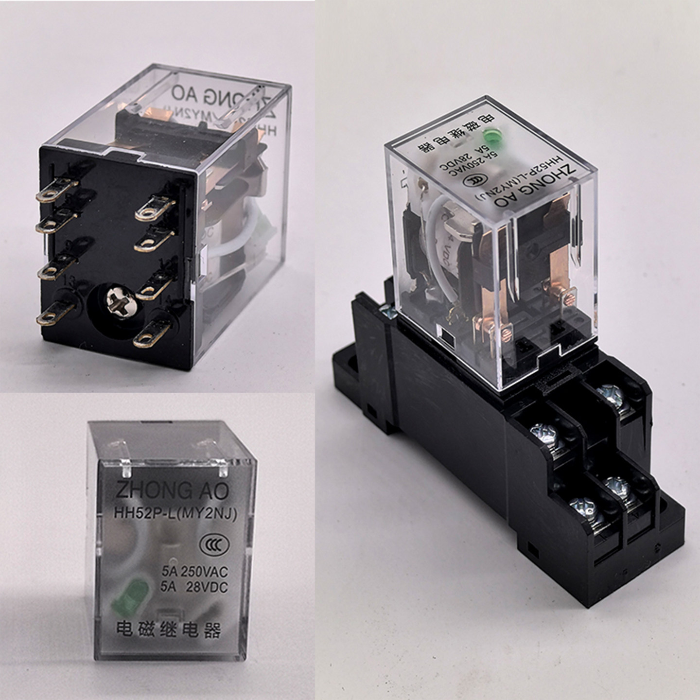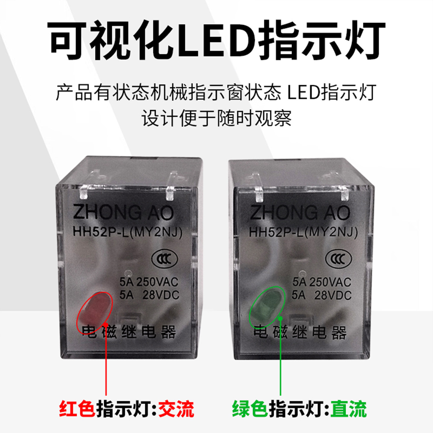 小型中间继电器220v交流24v12v直流HH52P电磁53P54P带灯底座MY2NJ