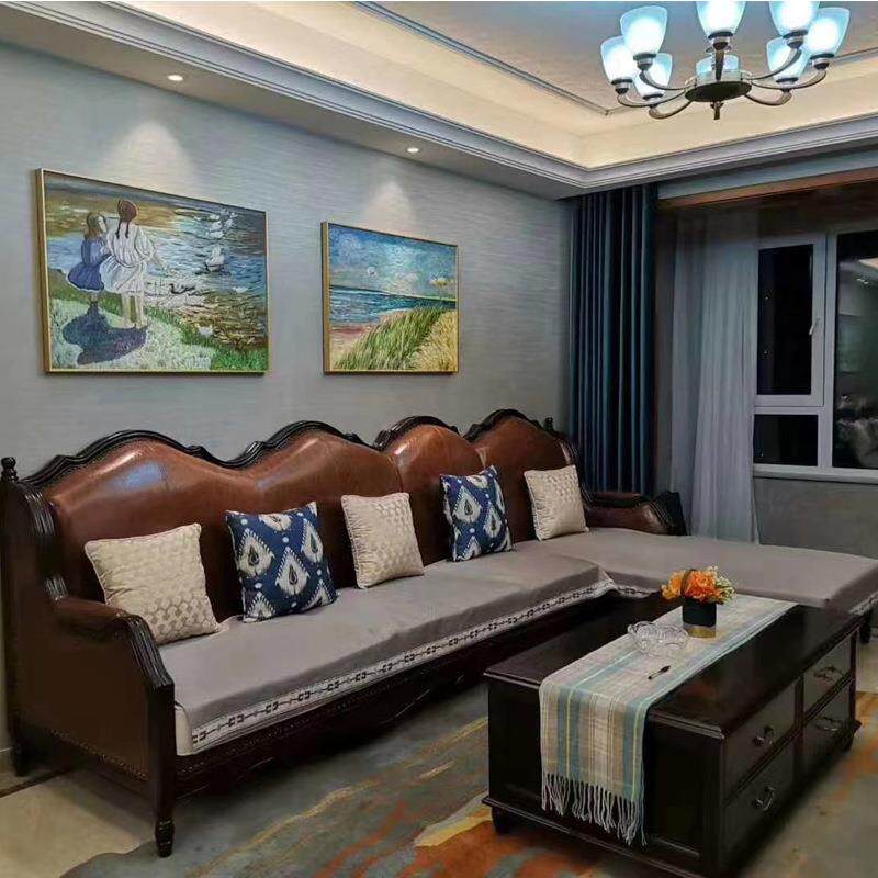 复古真皮牛皮进口布羽绒三人皮布沙发客厅高端大气别墅大平层 美式