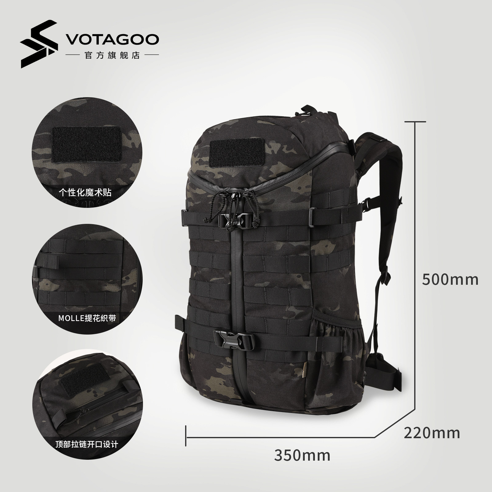 犸玎拓普战术双肩背包户外露营徒步大容量登山战术防泼水考杜拉