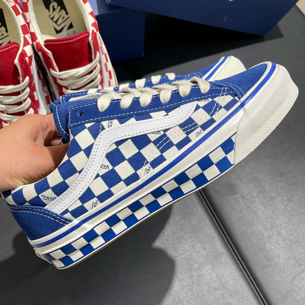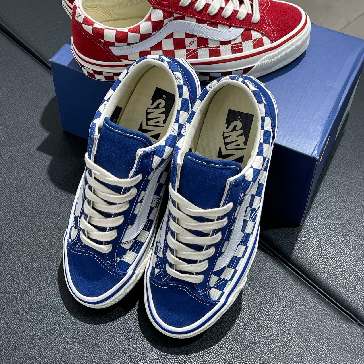 Vans Old Skool VN000D57ERY Premium复古红蓝白棋盘格男女板鞋由