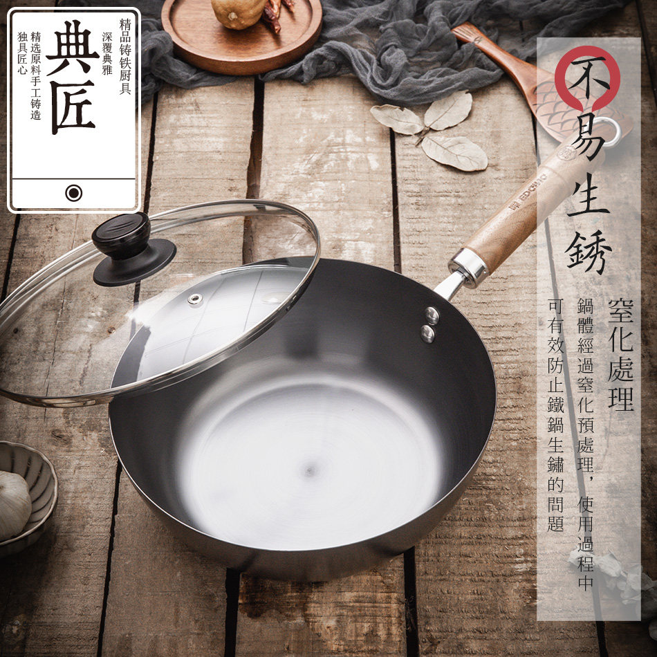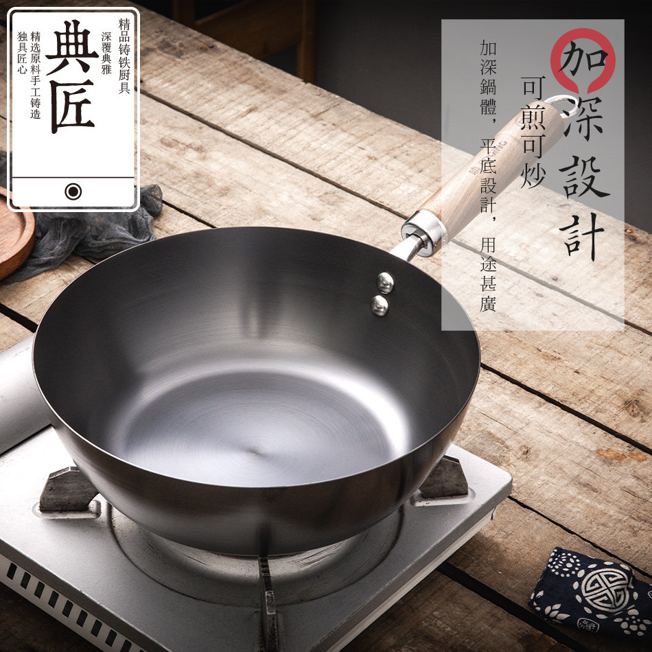 为您提供商品典匠精铁锅炒锅家用无涂层熟铁小铁锅平底炒菜锅燃气电磁炉26cm的详细介绍,