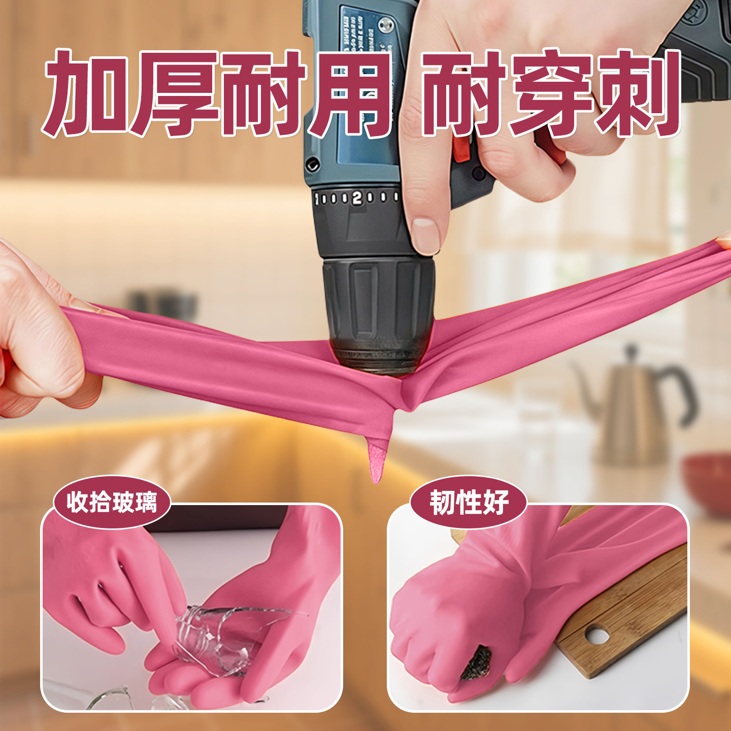 双一家务手套清洁乳胶清爽透气手套橡胶常规加厚防水耐用厨房洗菜