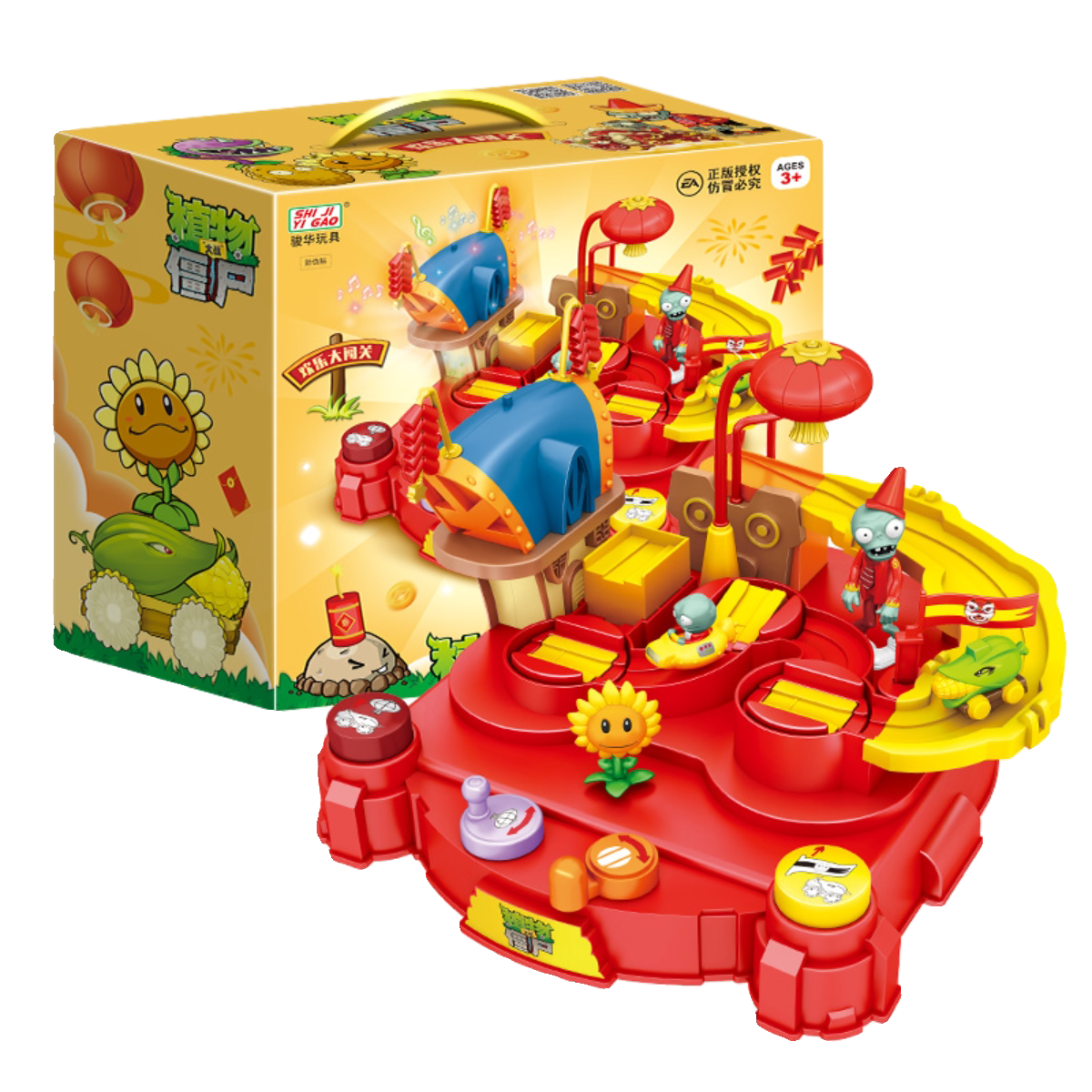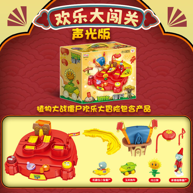 植物大战僵尸新款 儿童轨道滑行玩具礼盒 新春欢乐大冒险闯关声光版