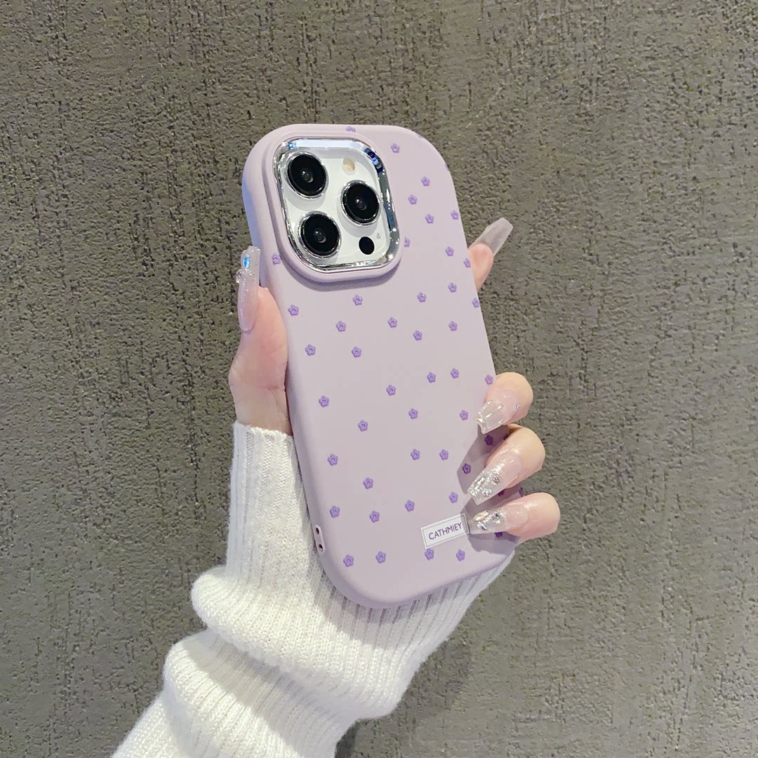 ins风温柔小清新紫色碎花适用苹果15promax手机壳高级感时尚 13pro硅胶手机套xs xr个性 防摔保护套女 简约14