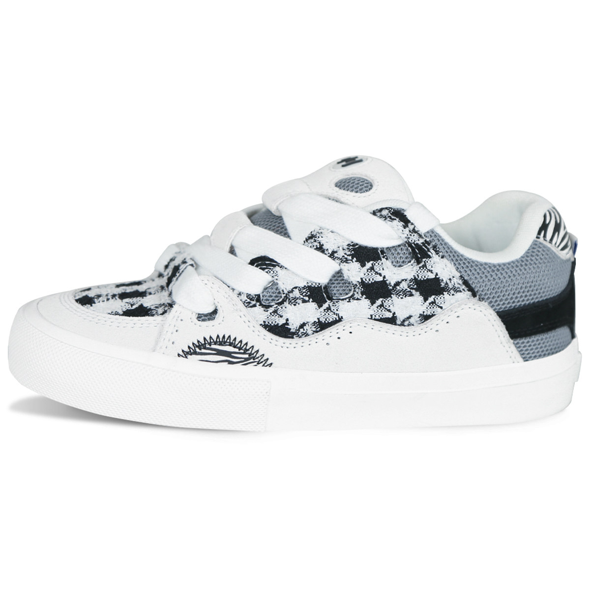 顽刻ollieskate面包鞋 斑马纹格子小香风翻毛皮拼接BAKE2滑板鞋